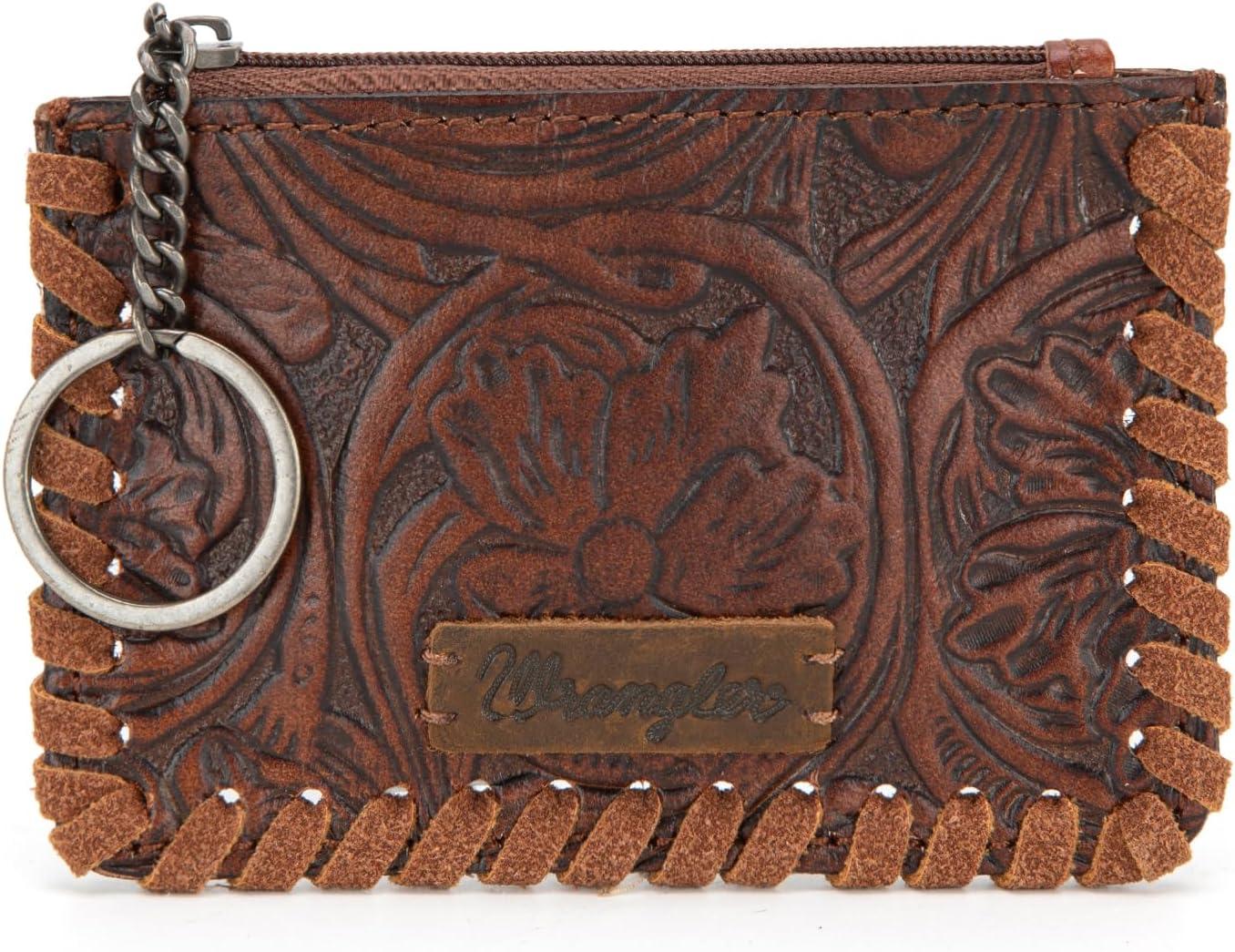 imageMontana West  Wrangler Coin Purse for Men Women Embossed Leather Coin Pouch Small Wallet BlackTooling Pouch Brown
