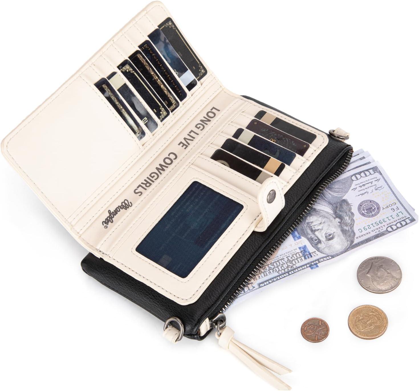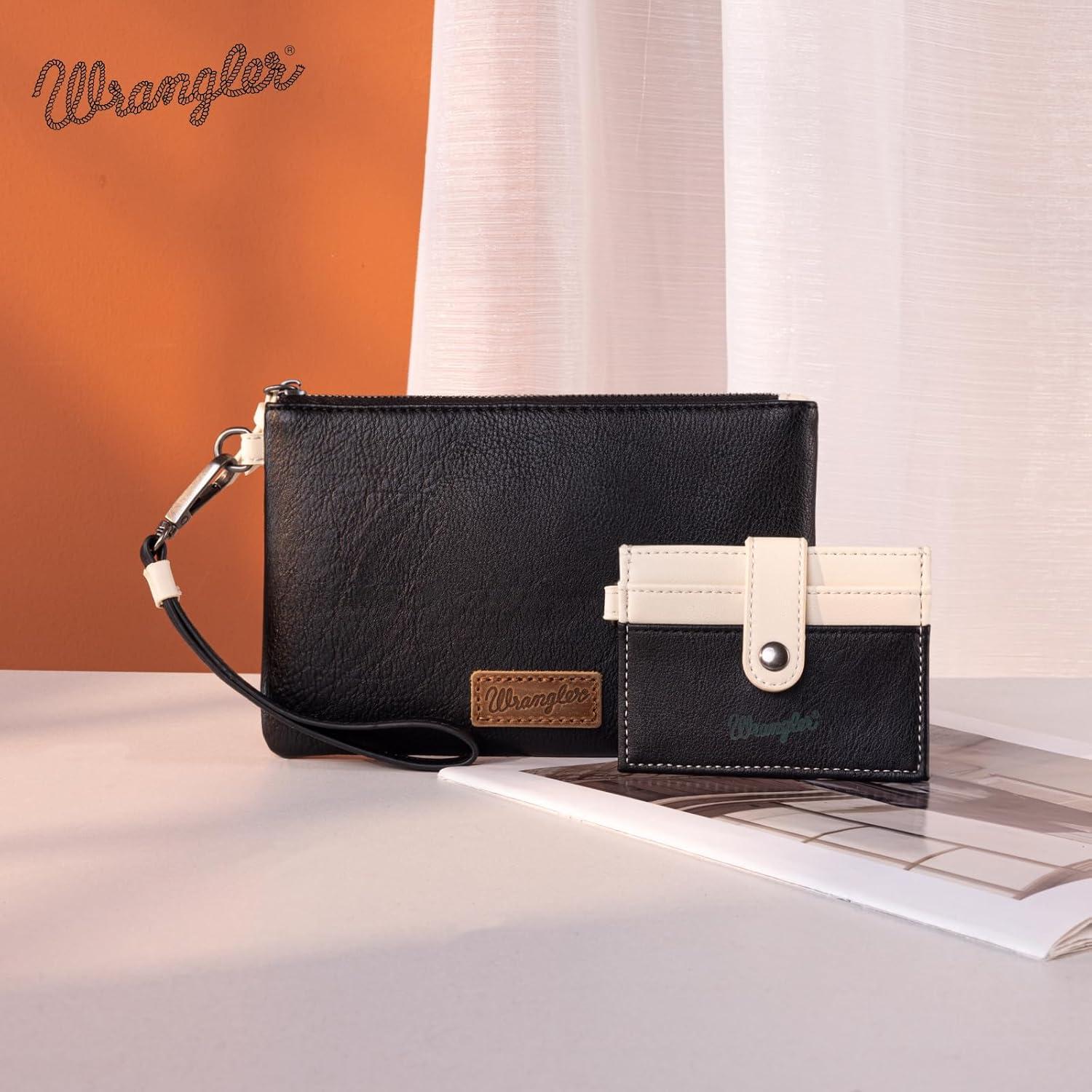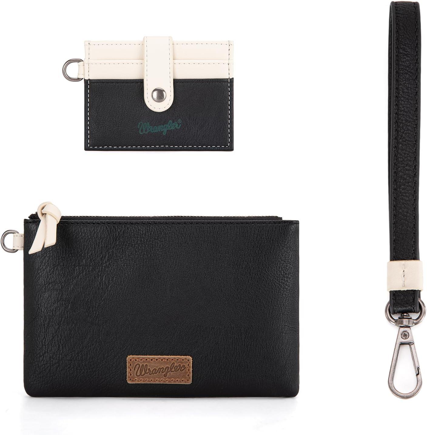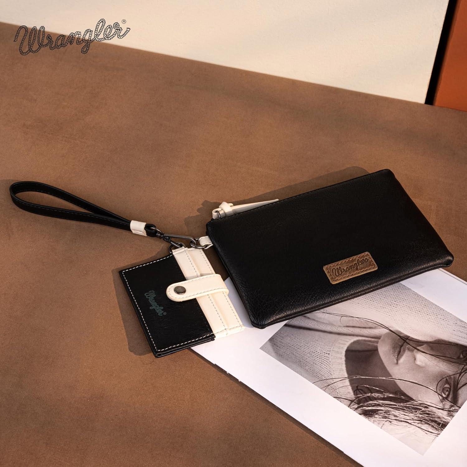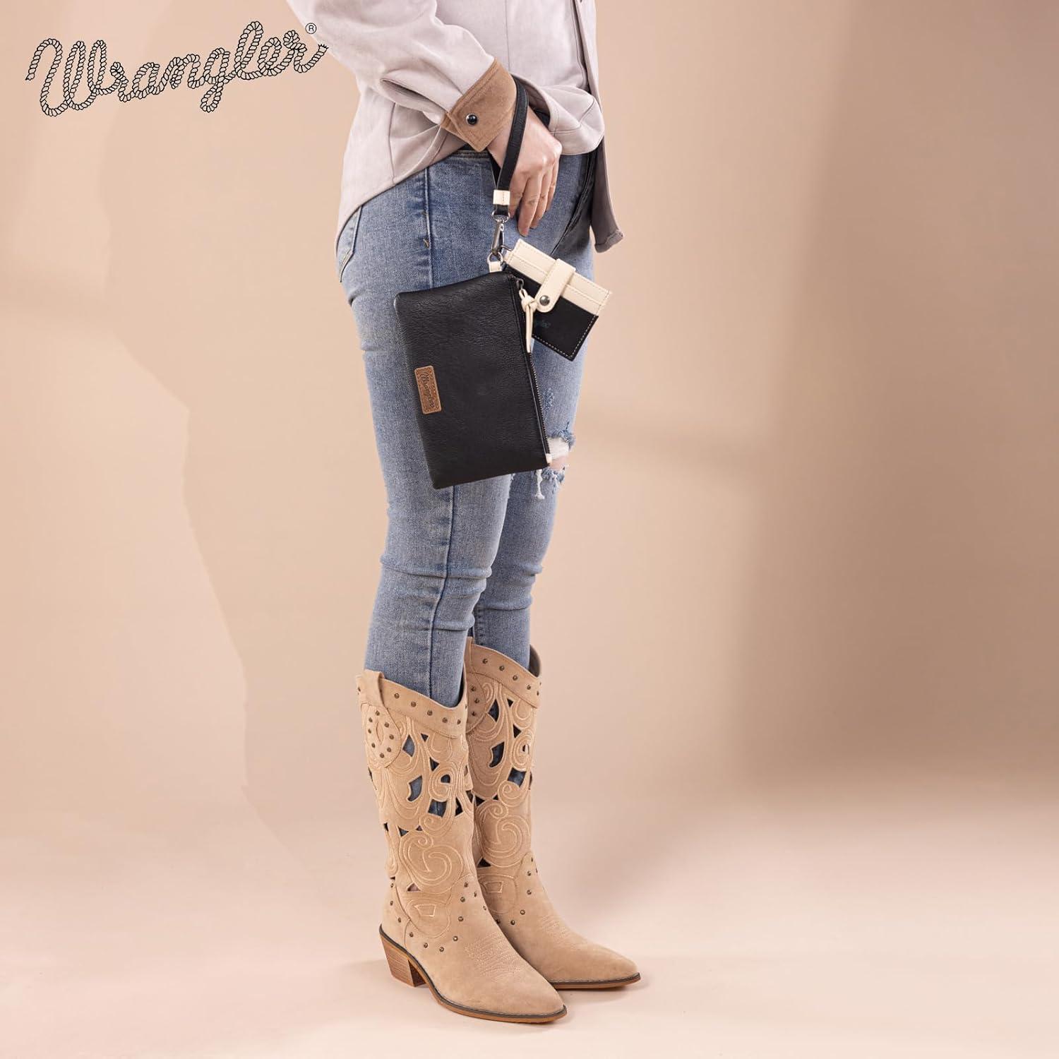 Montana West x Wrangler Keychain Wristlet Wallets for Women Detachable Dual Pouch Wristlet Portable Card Holder for Women(Artist Black)