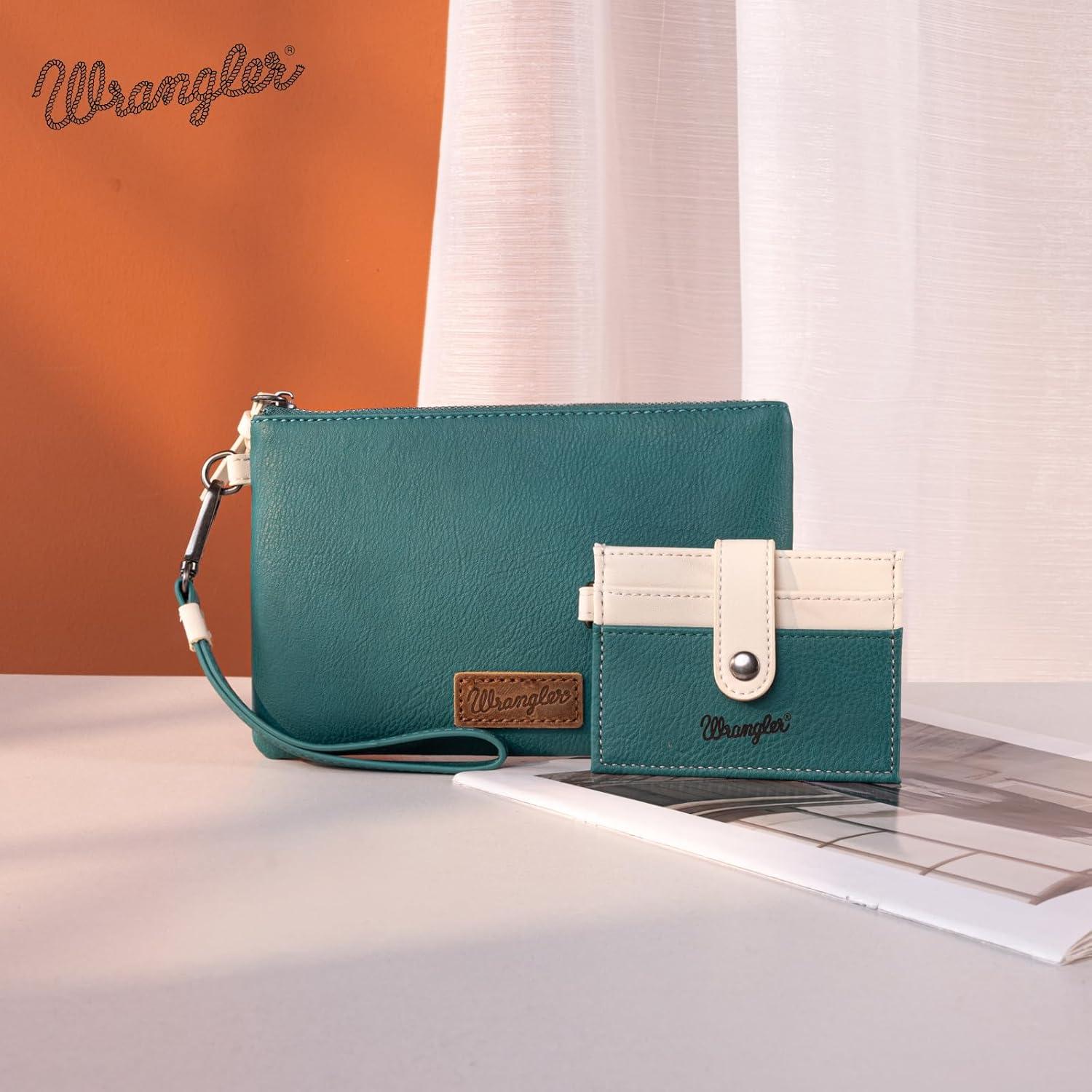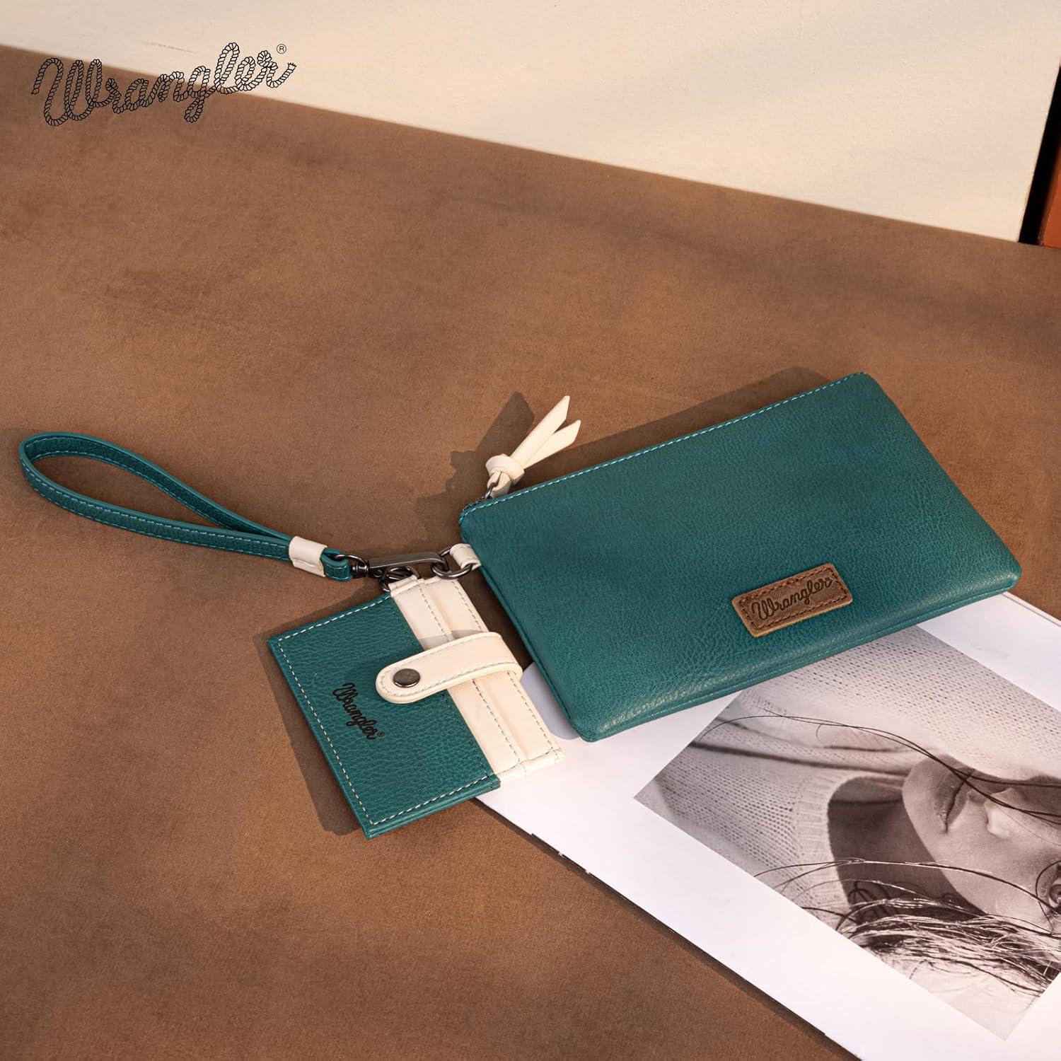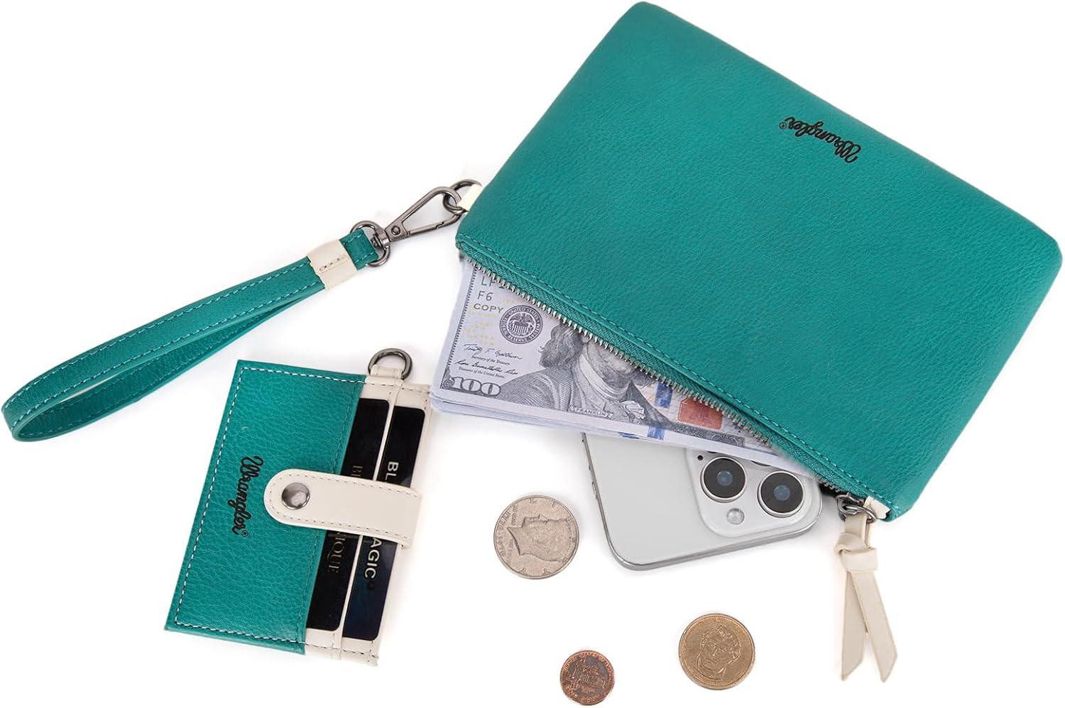 Montana West x Wrangler Keychain Wristlet Wallets for Women Detachable Dual Pouch Wristlet Portable Card Holder for Women(Turquoise)