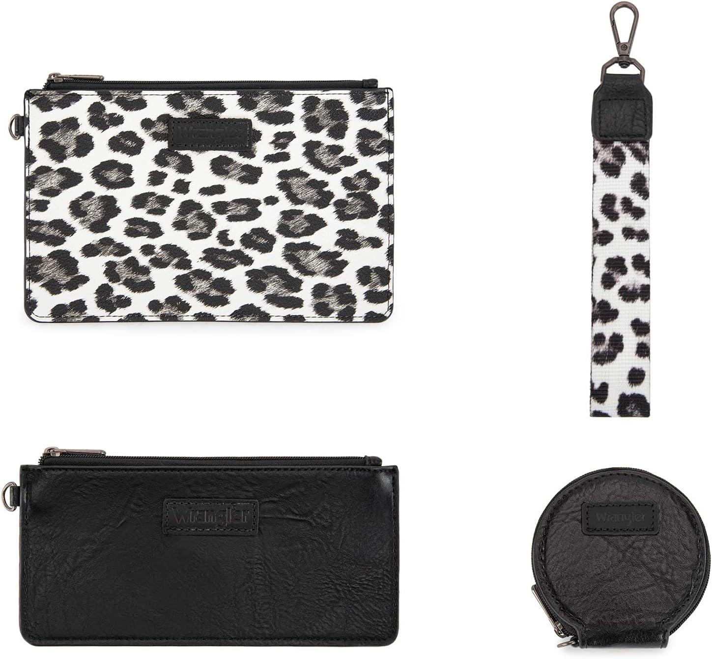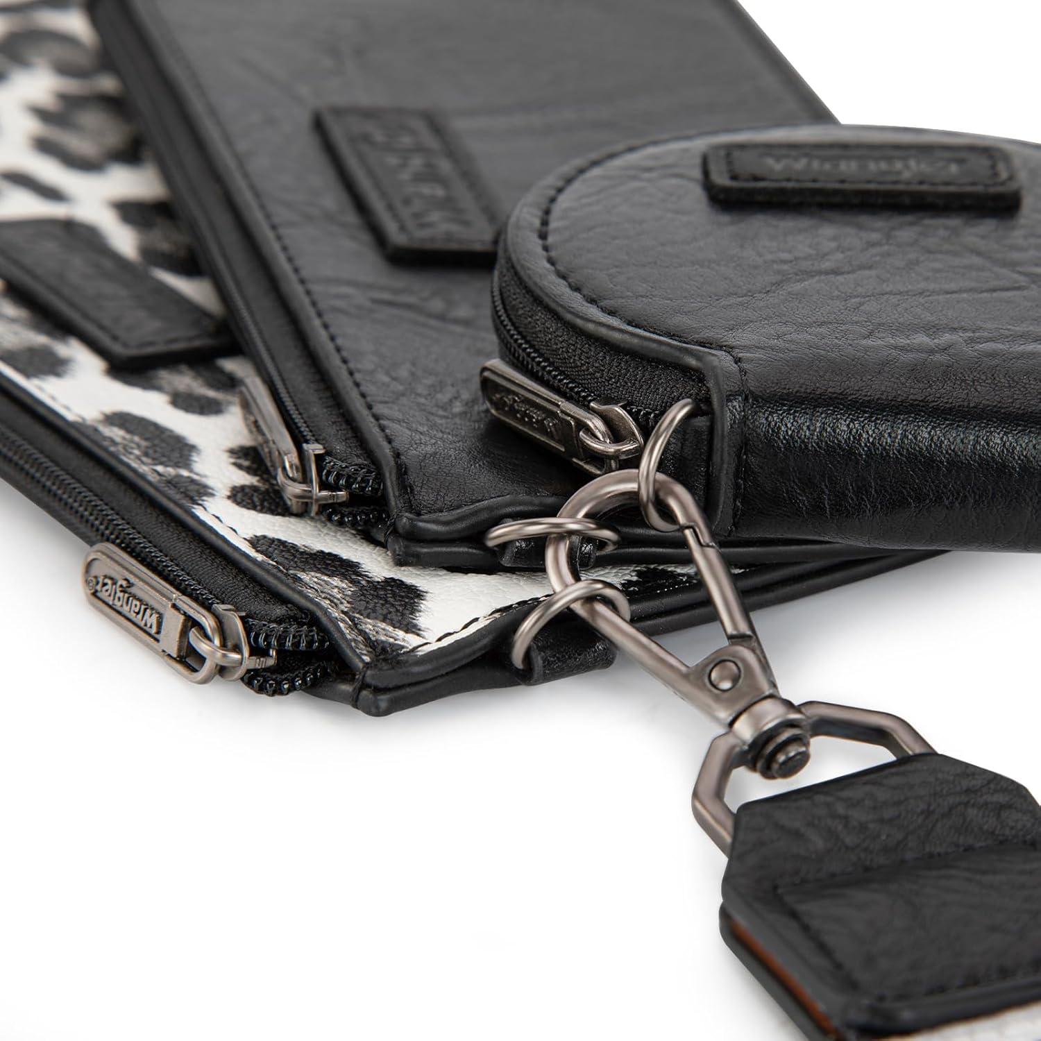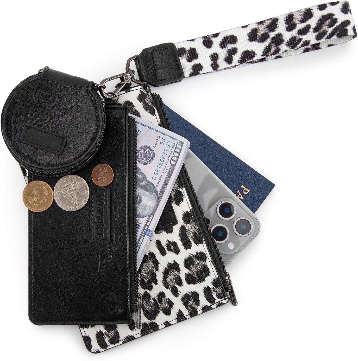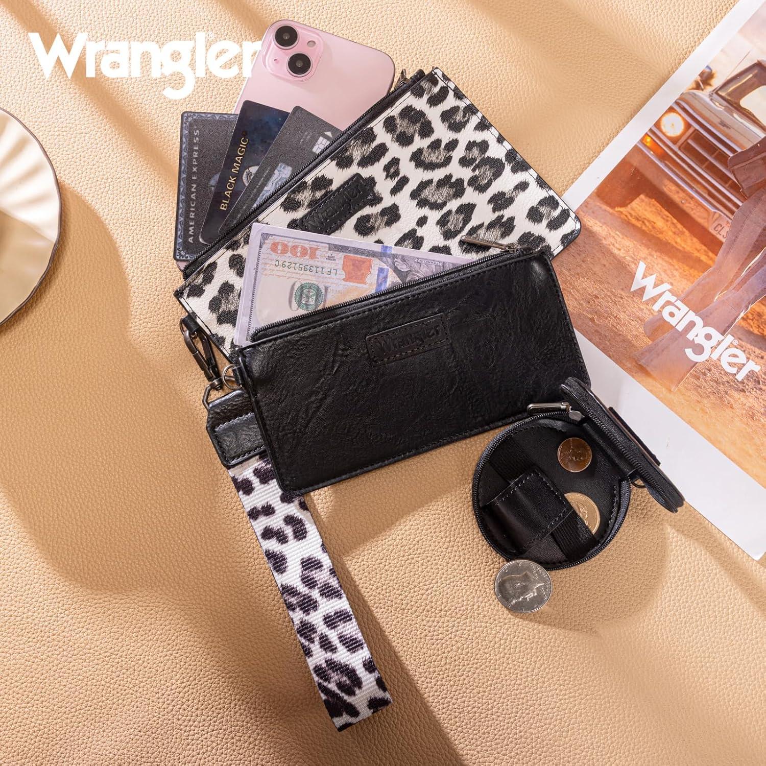 Montana West X Wrangler Keychain Wristlet Wallets for Women Dual Pouch Wristlet with Zipper Coin Purse Large Capacity and Easy to Carry(Black)
