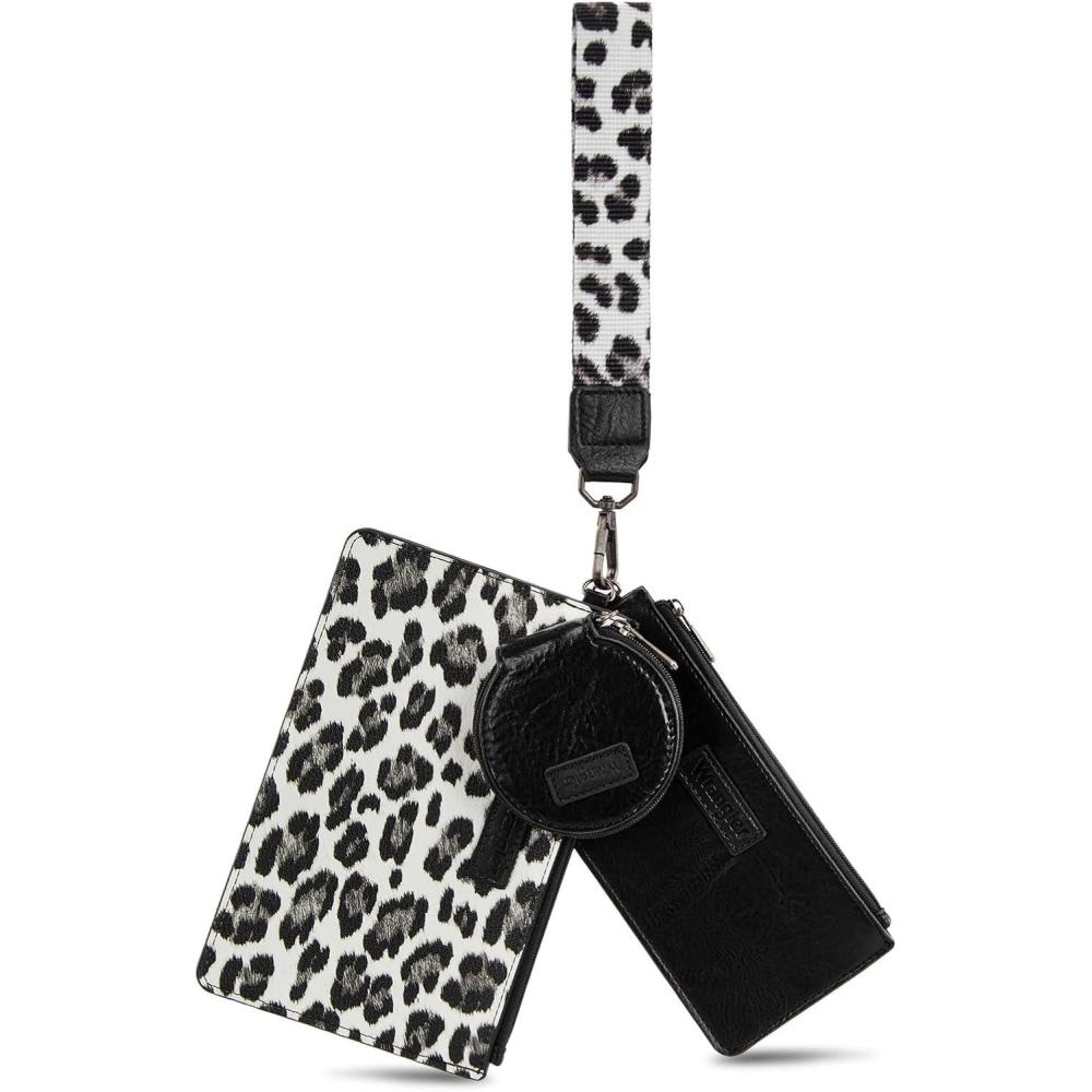 Elevate your accessory game with our womens trifold wristlet wallet , a perfect blend of style and functionality. This uniquely designed wallet features a detachable construction, including a trifold wallet and a bifold card holder, allowing you to seamlessly switch between using them separately or combined based on your needs. Inspired by western aesthetics, the female wallet is adorned with eye-catching studs, a classic western buckle , and a chic cow print, making it an ideal accessory for those who have a flair for the rustic charm of the west. Crafted from high-quality, soft vegan leather, this women wallet provides a comfortable hand feel while ensuring durability for long-lasting use. Its lightweight design features a convenient wrist strap, making it easy to carry on the go, whether you're out for a casual day or a night out. Safety is paramount, and our large wallet is equipped with RFID blocking technology, designed to protect your valuables from unauthorized scanning and identity theft. With ample space for cards, cash, and essentials, this versatile accessory is not only a ladies' wallet but also a stylish clutch option. Experience the perfect combination of western flair and modern security features with our womens trifold wallet wristlet— the ultimate wallet for the empowered woman.