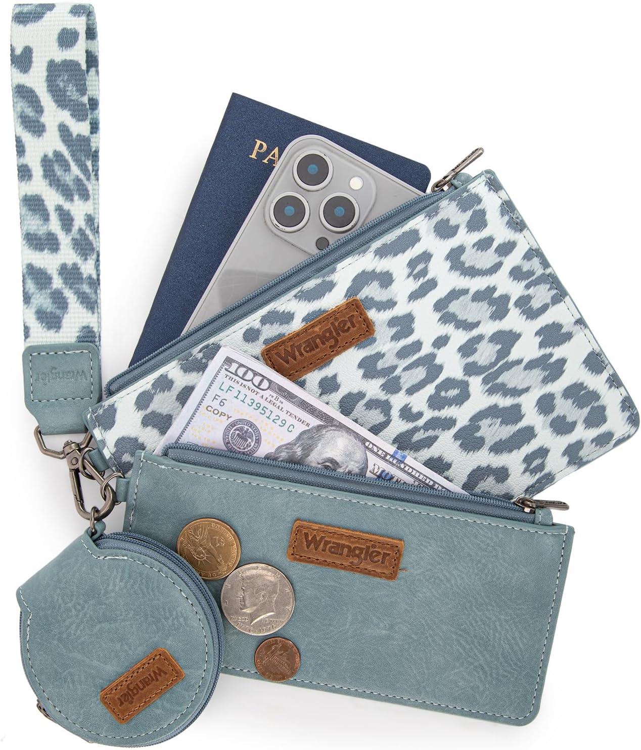 imageMontana West X Wrangler Keychain Wristlet Wallets for Women Dual Pouch Wristlet with Zipper Coin Purse Large Capacity and Easy to CarryJean