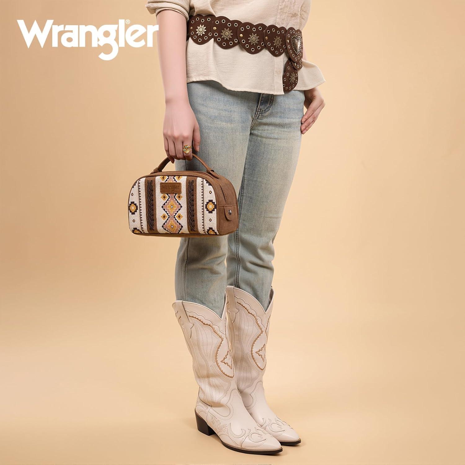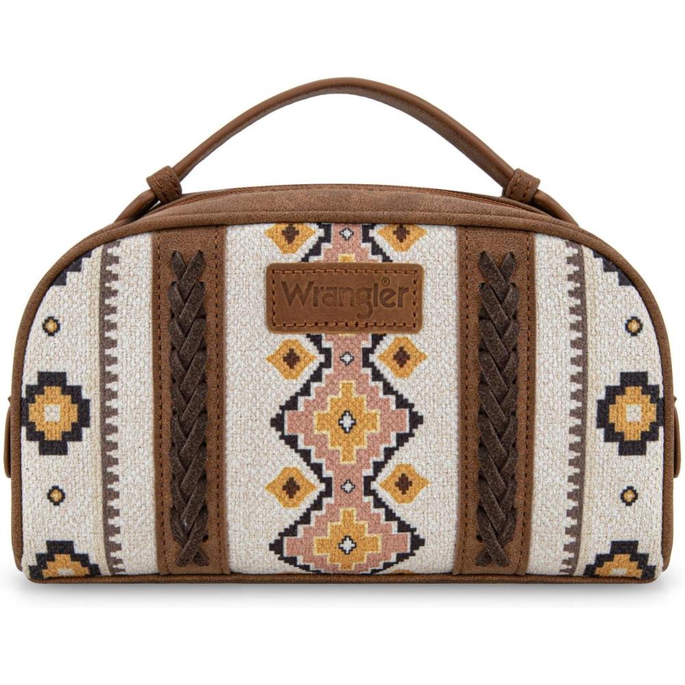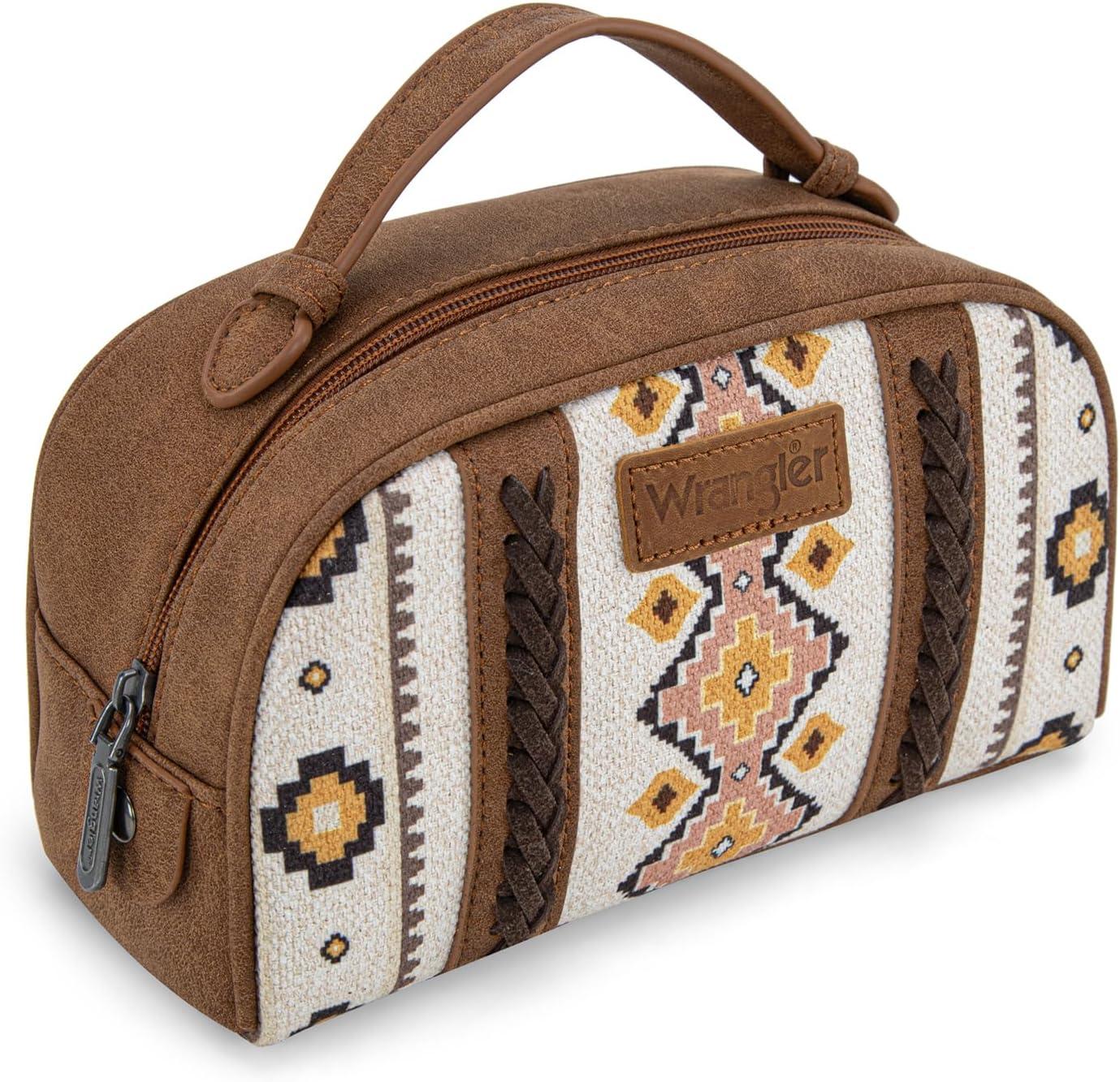 Montana West × Wrangler Makeup Bags for Women Portable Aztec Toiletry Bag Southwestern Travel Cosmetic Organizer for Gift WG2203-190LCF(S-beige)