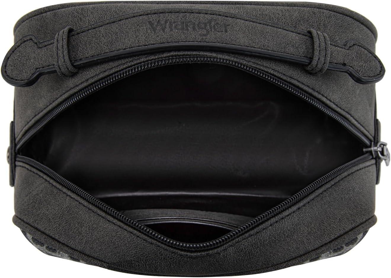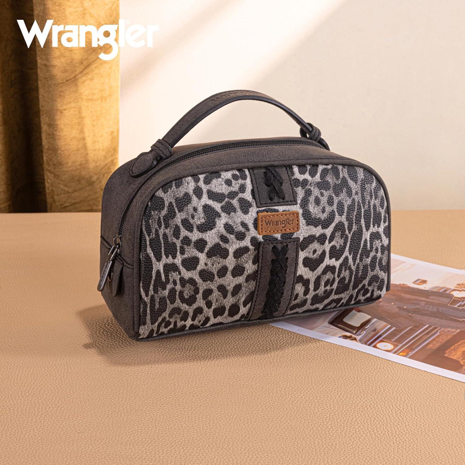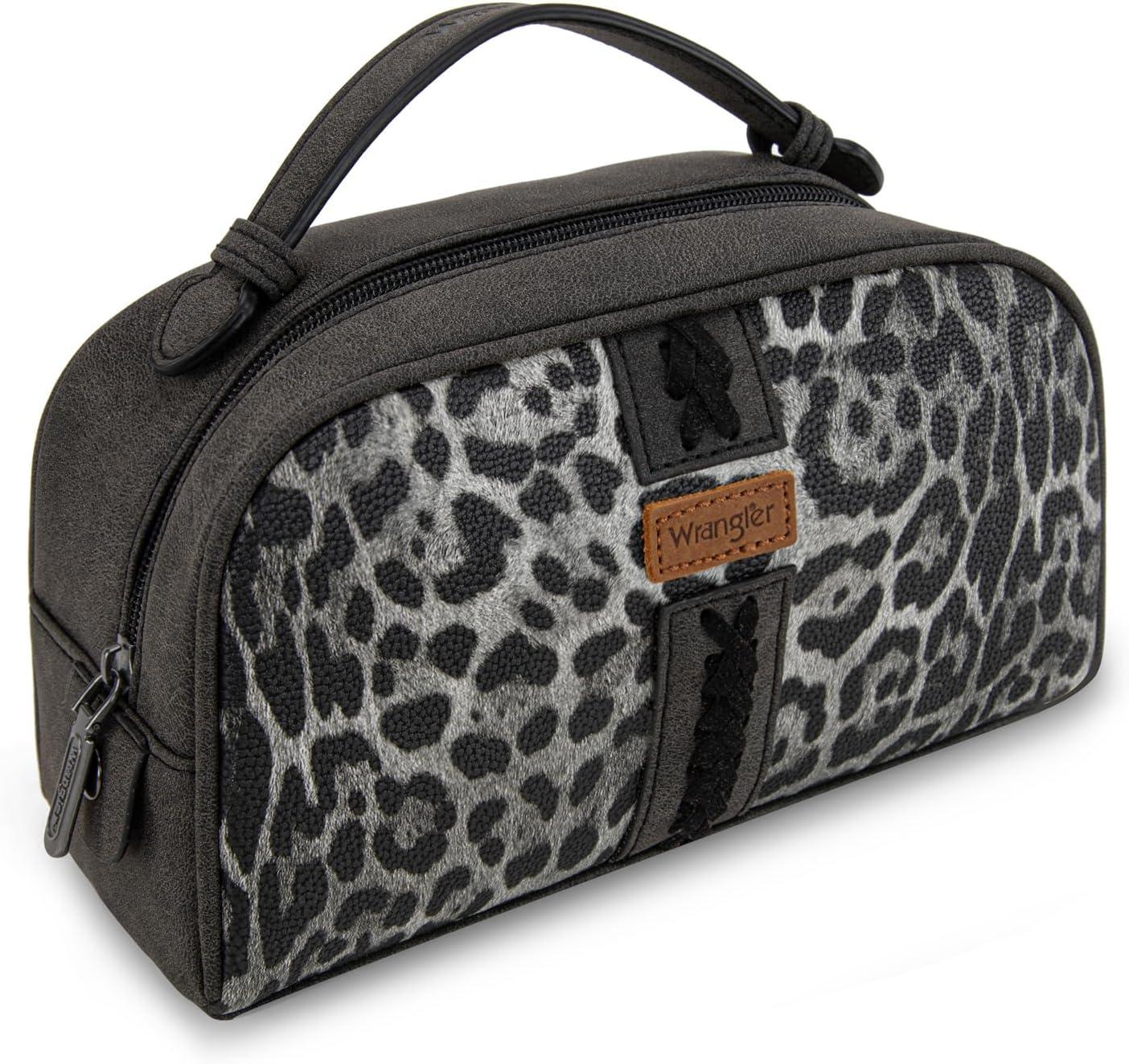 Montana West × Wrangler Makeup Bags for Women Portable Aztec Toiletry Bag Southwestern Travel Cosmetic Organizer for Gift WG2203-190LCF(S-leopard black)