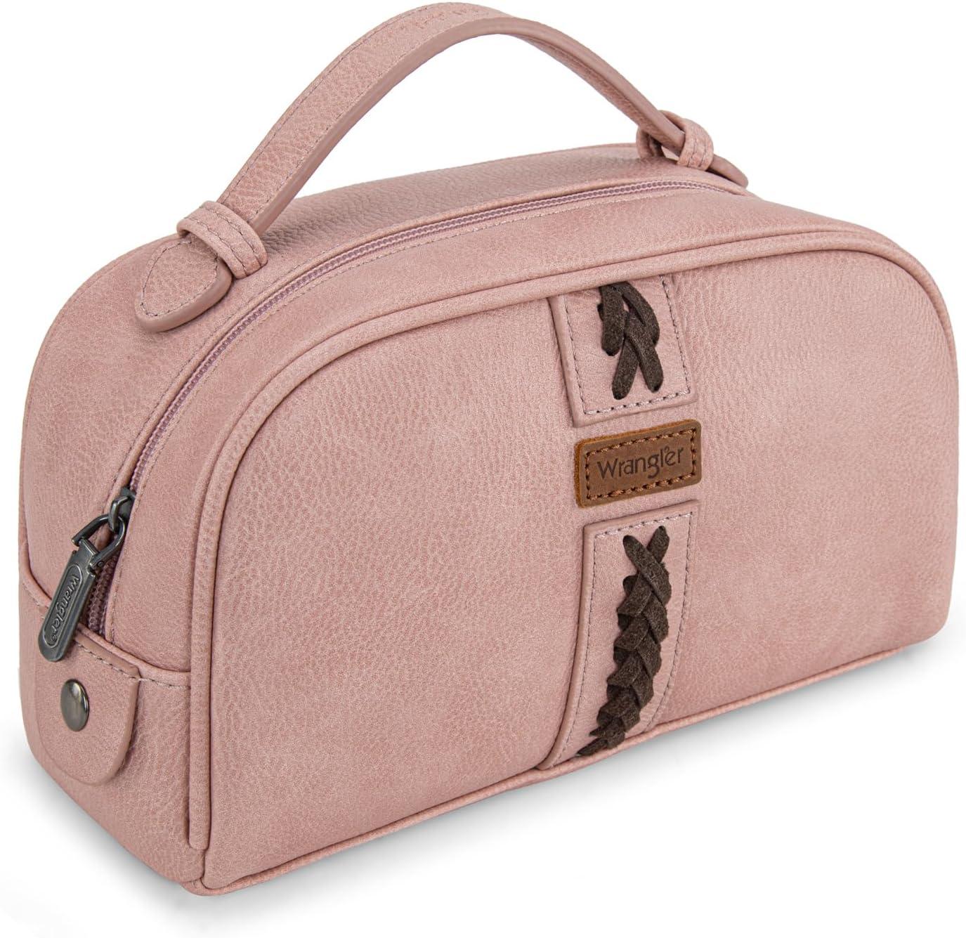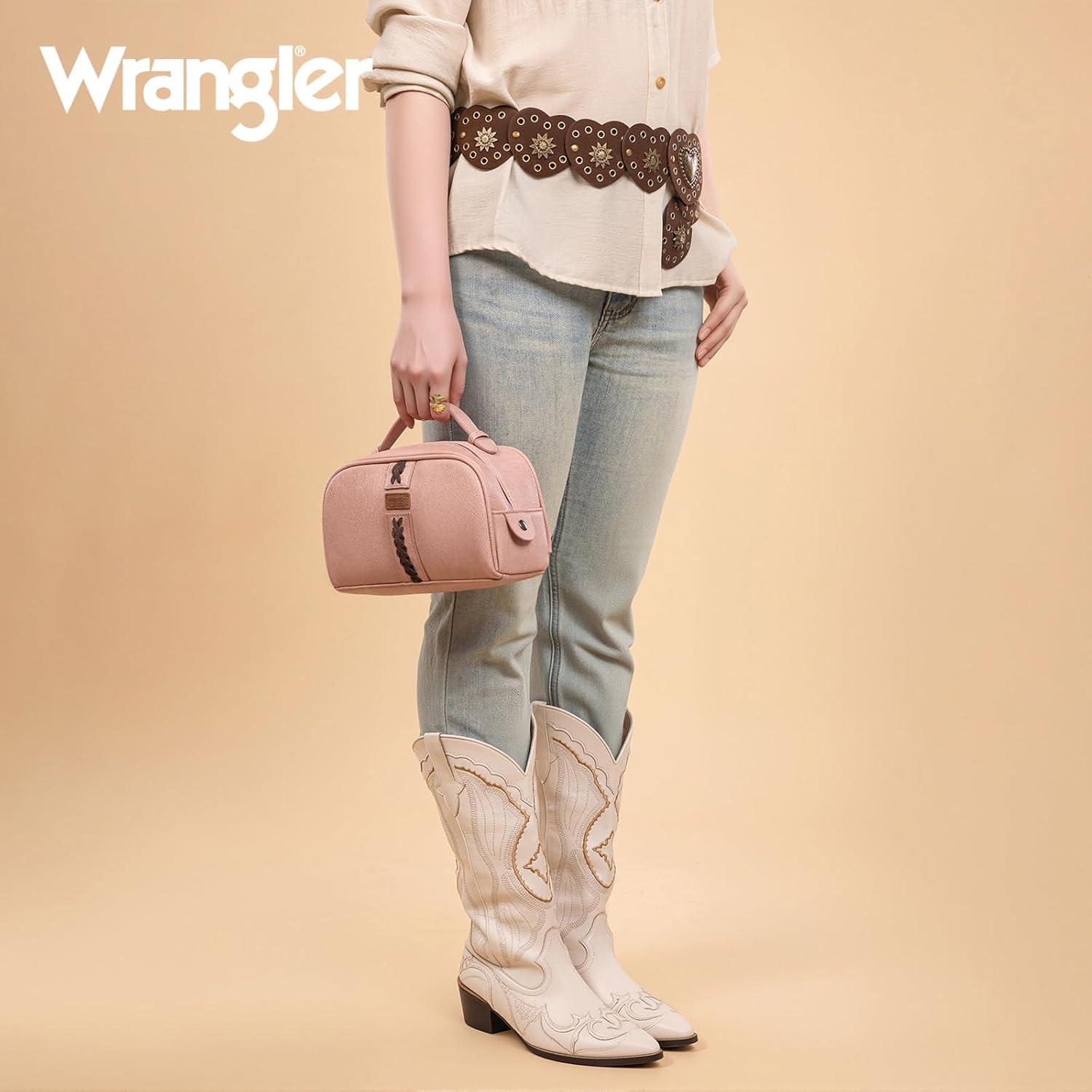 Montana West × Wrangler Makeup Bags for Women Portable Aztec Toiletry Bag Southwestern Travel Cosmetic Organizer for Gift WG2203-190LCF(S-pink)