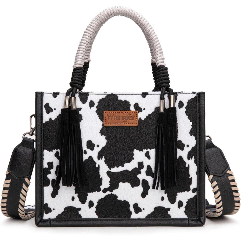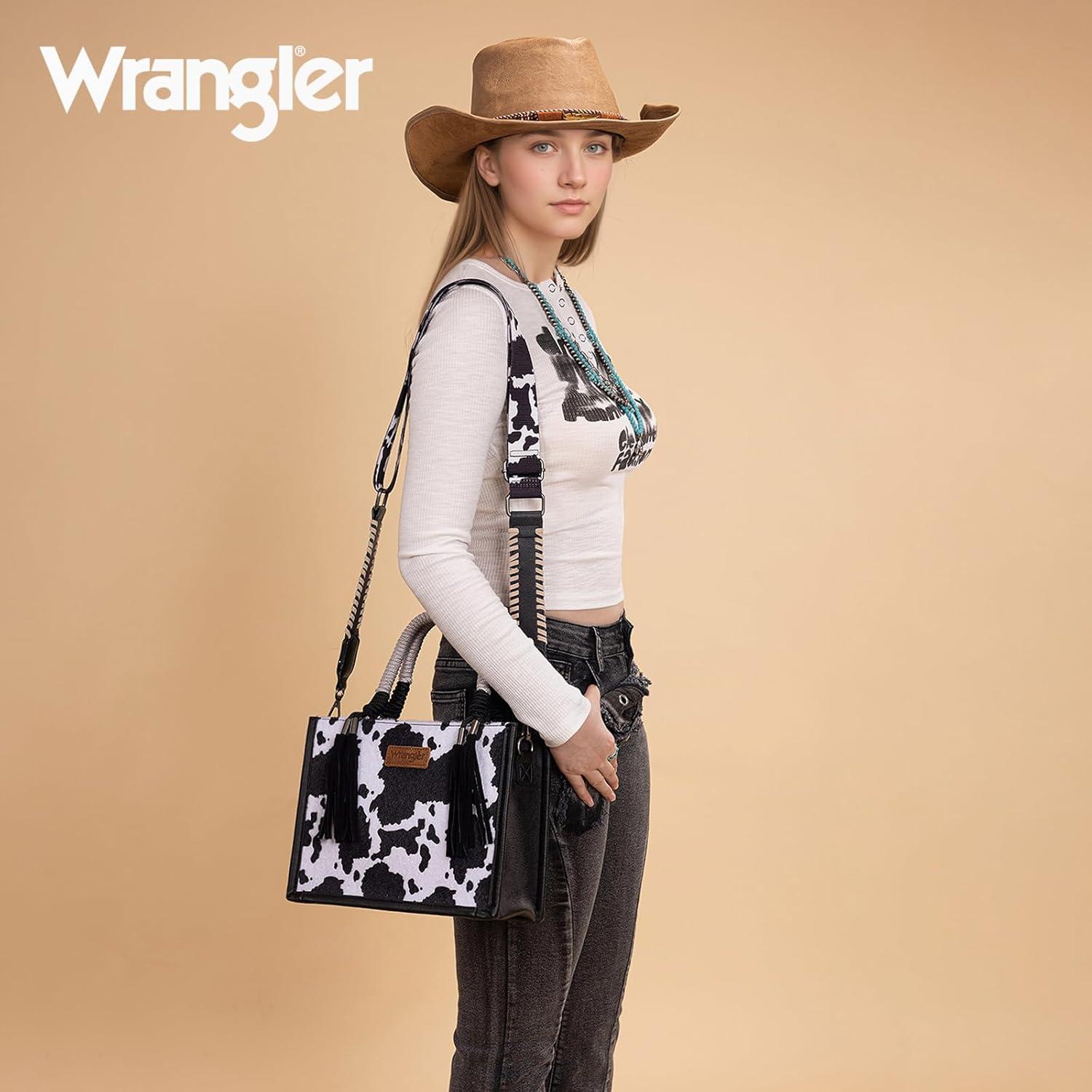Montana West X Wrangler Tote Bag Cow Print Western Satchel Bags for Women with Braided Rope Handle(Black)