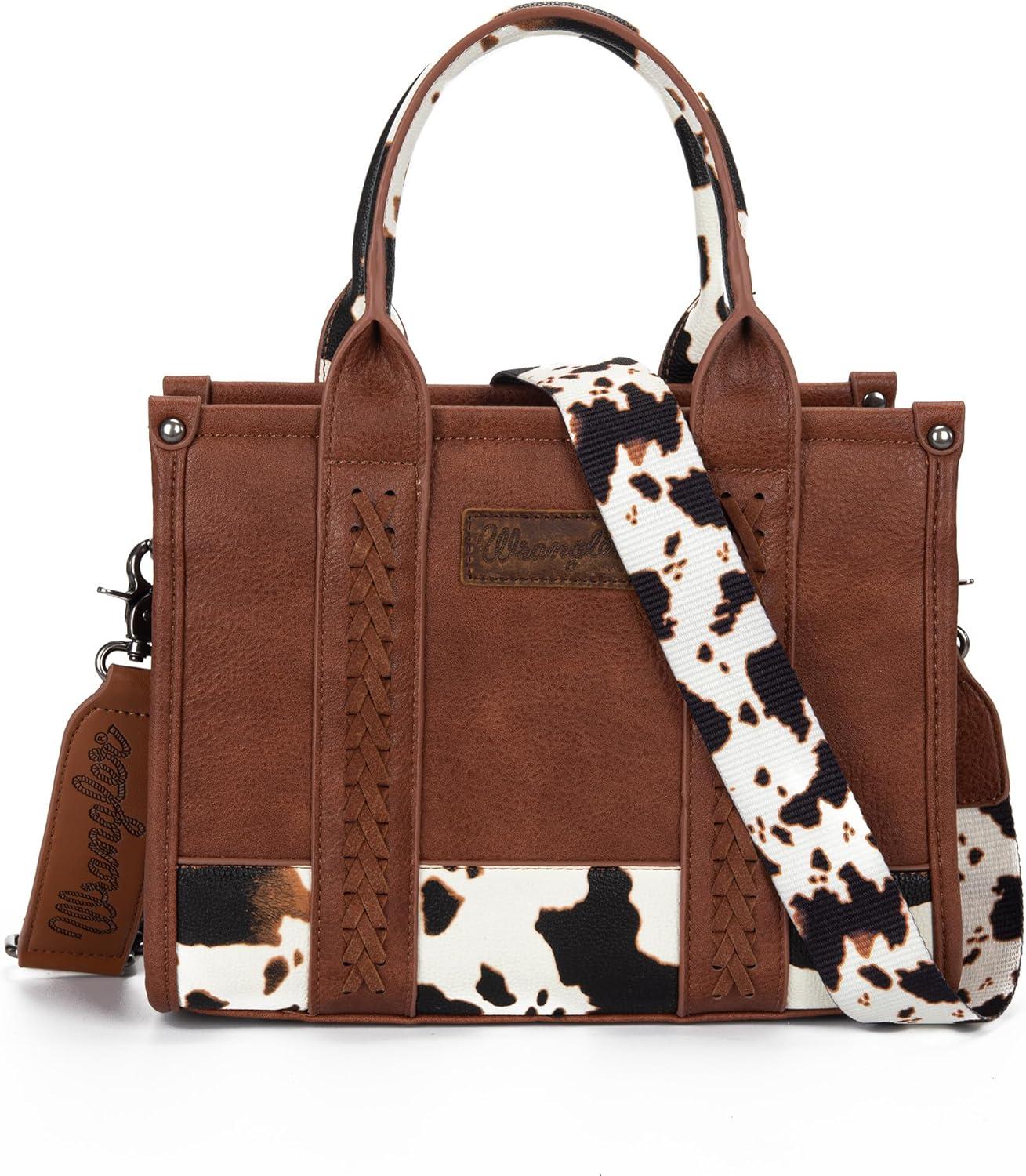 imageMontana West  Wrangler Tote Bag for Women Western Cow Print Purse Designer Top Handle HandbagsM Brownguitar Strap