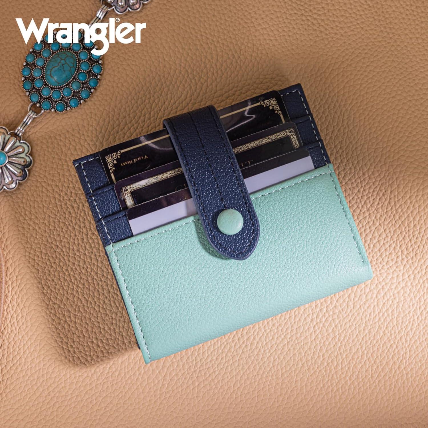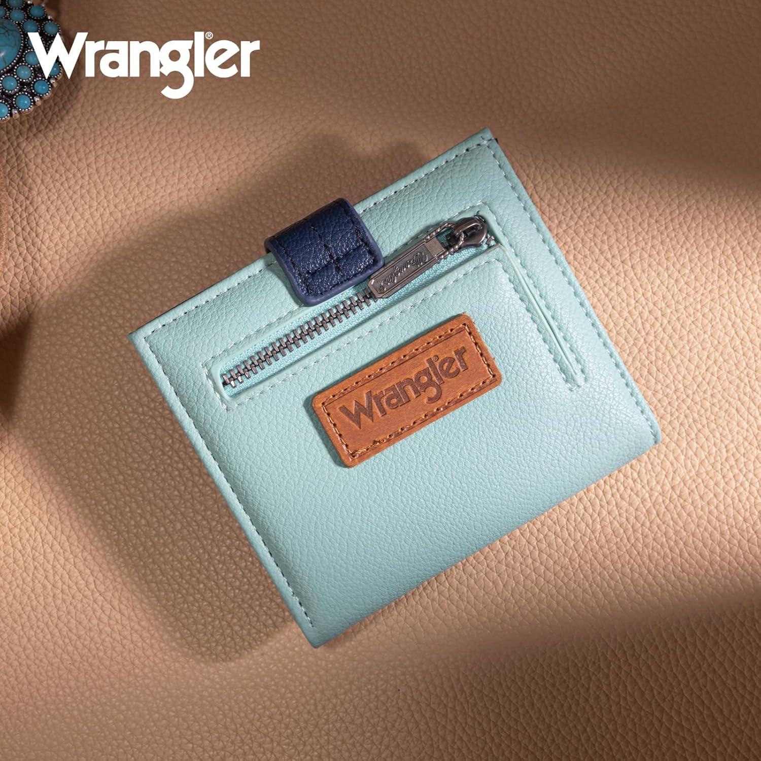 Montana West X Wrangler Womens Small Wallet Bifold Cute Wallet for Girls RFID Money Organizers with Zipper Coin Pocket WG216-W065TN(Blue)
