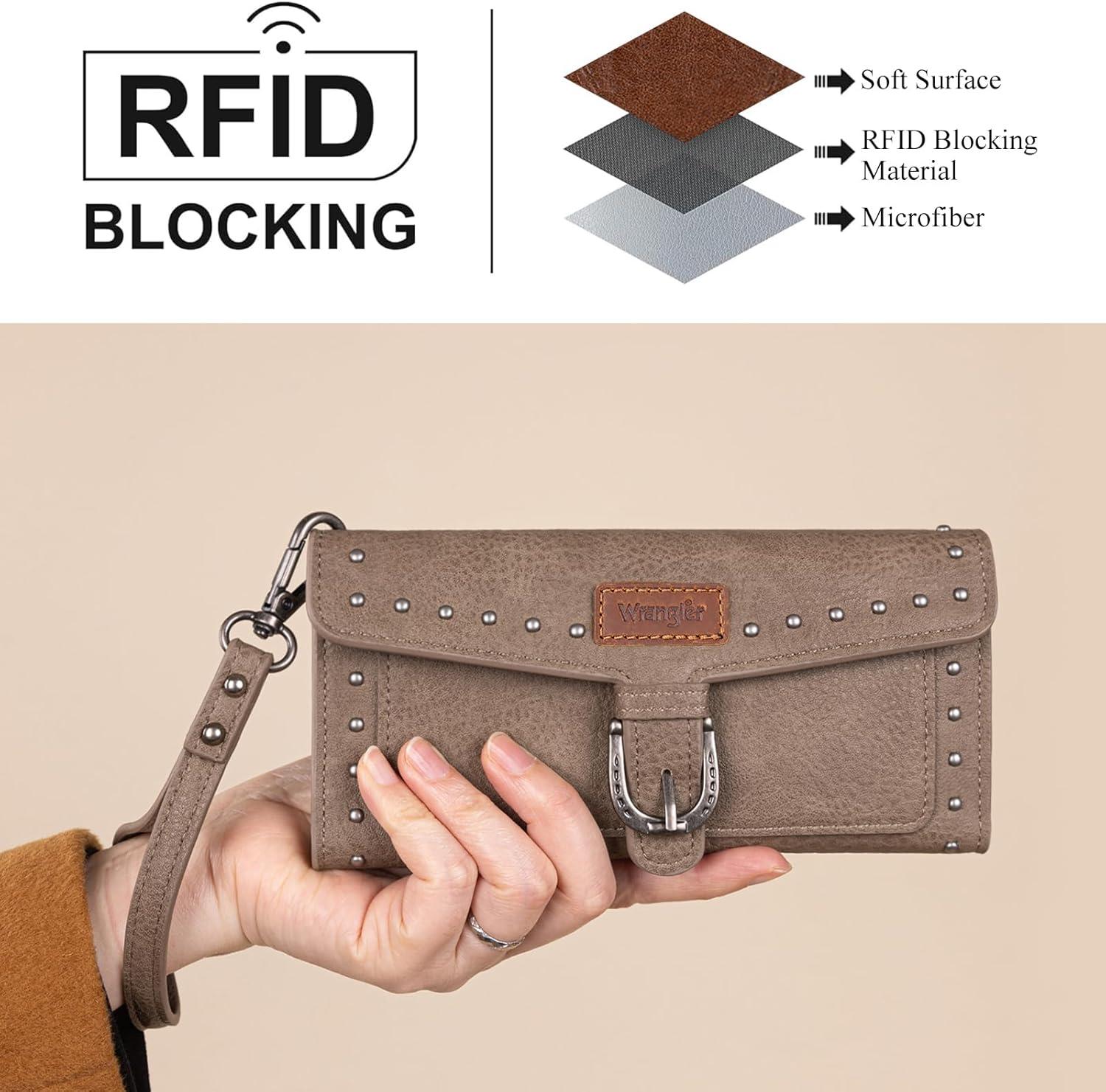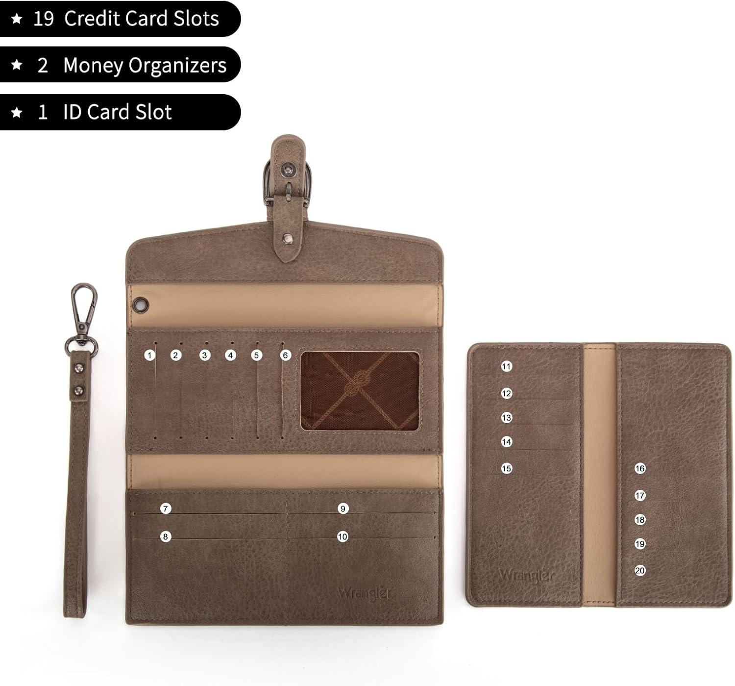 Montana West X Wrangler Womens Wallet Western Wristlet for Women Large Rfid Wallet with Detachable Credit Card Holder(Western-khaki)