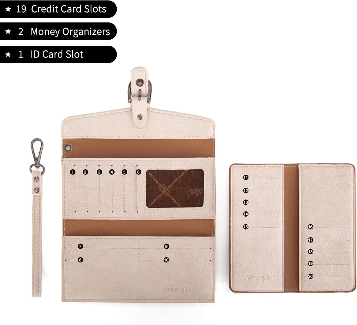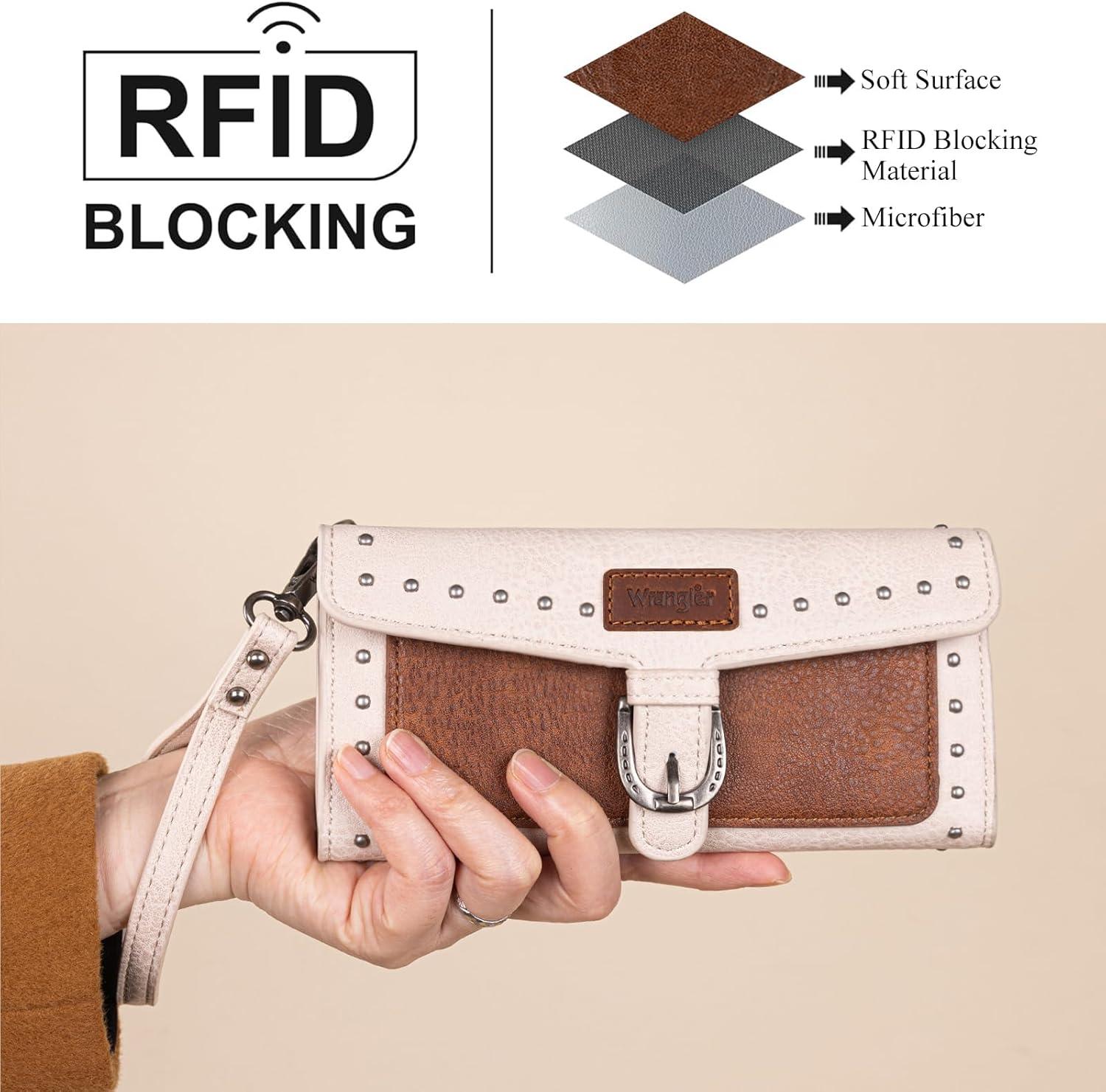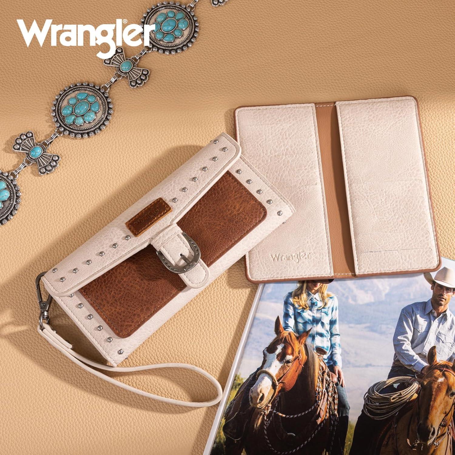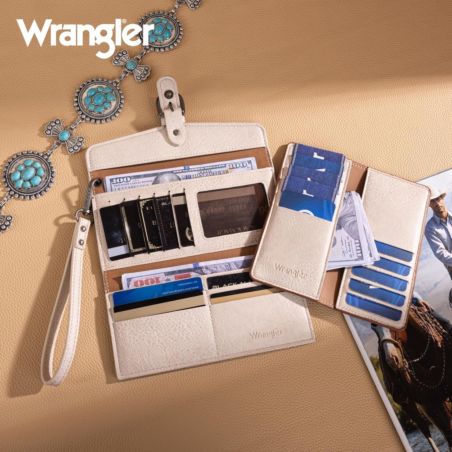 Montana West X Wrangler Womens Wallet Western Wristlet for Women Large Rfid Wallet with Detachable Credit Card Holder(Western-tan)