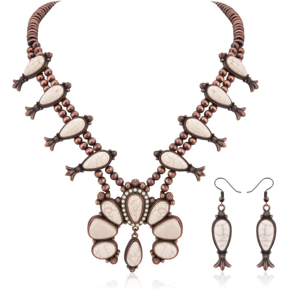 Rustic Couture's Western Jewelry Set for Women Cowgirl Vintage Western Necklace Earring(J-White)