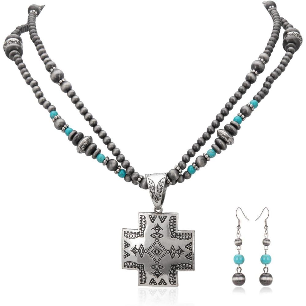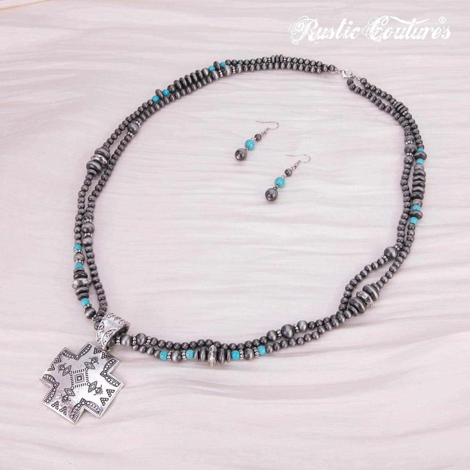Rustic Couture’s Western Jewelry Set for Women Cowgirl Vintage Western Necklace Earring(J-White)