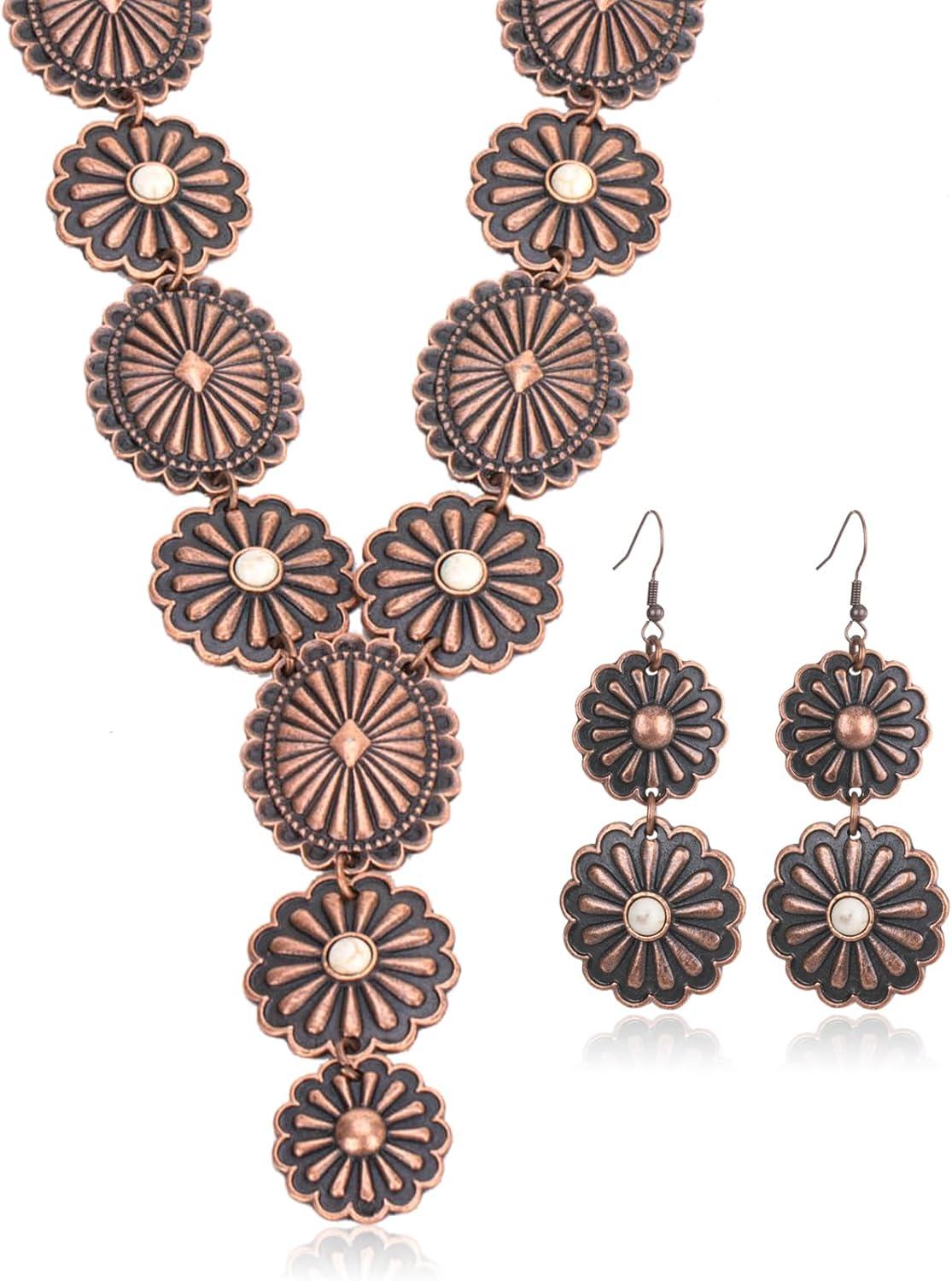 Rustic Couture's Western Necklace Earrings Jewelry Set for Women(A-White)
