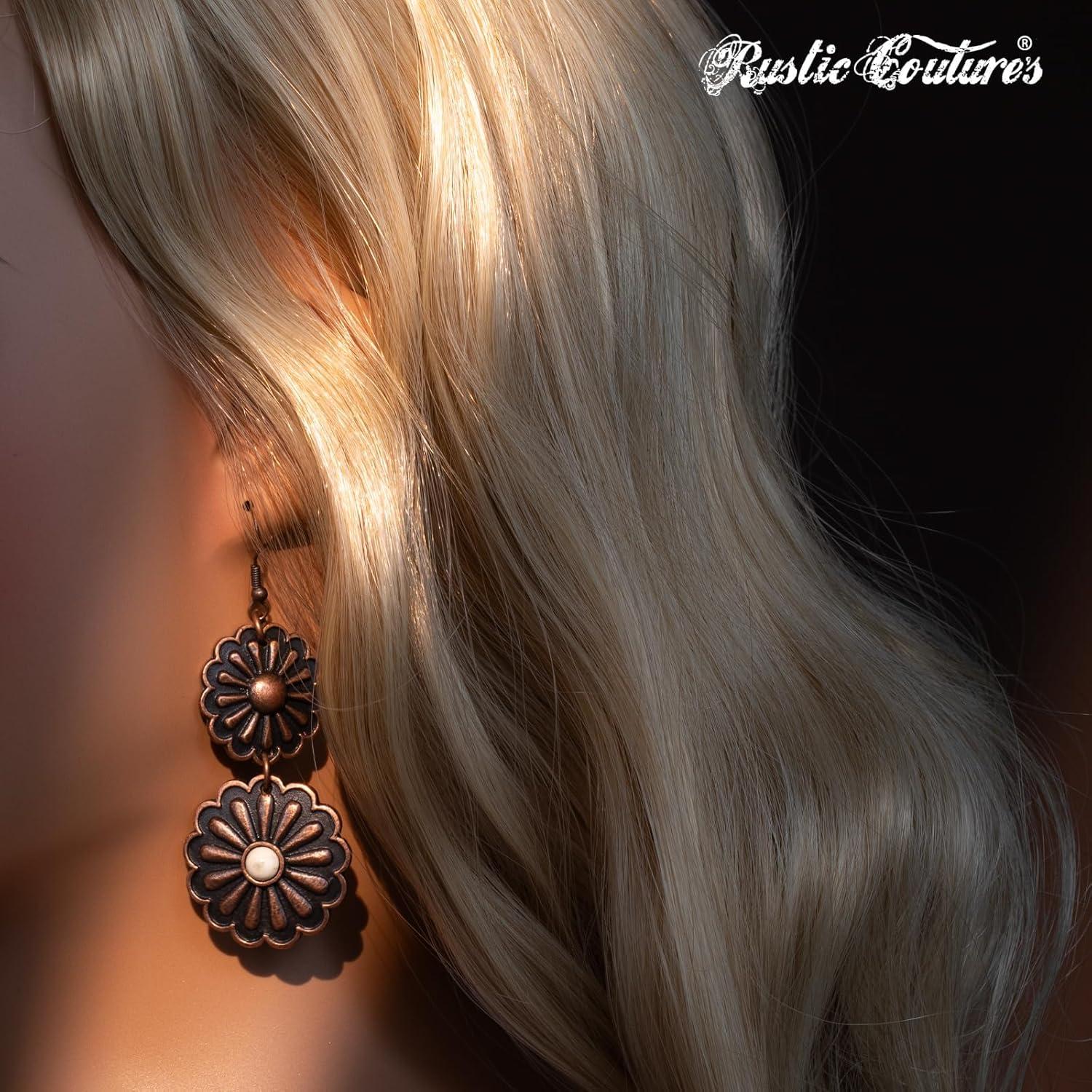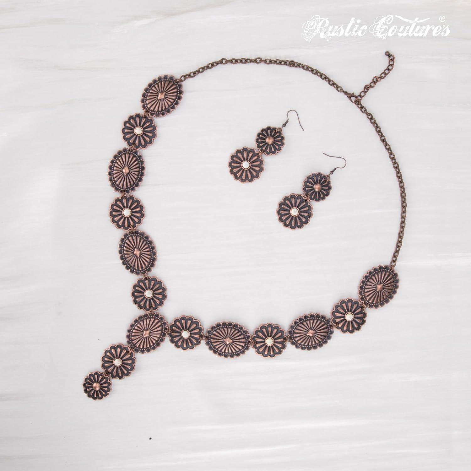 Rustic Couture’s Western Necklace Earrings Jewelry Set for Women(A-White)