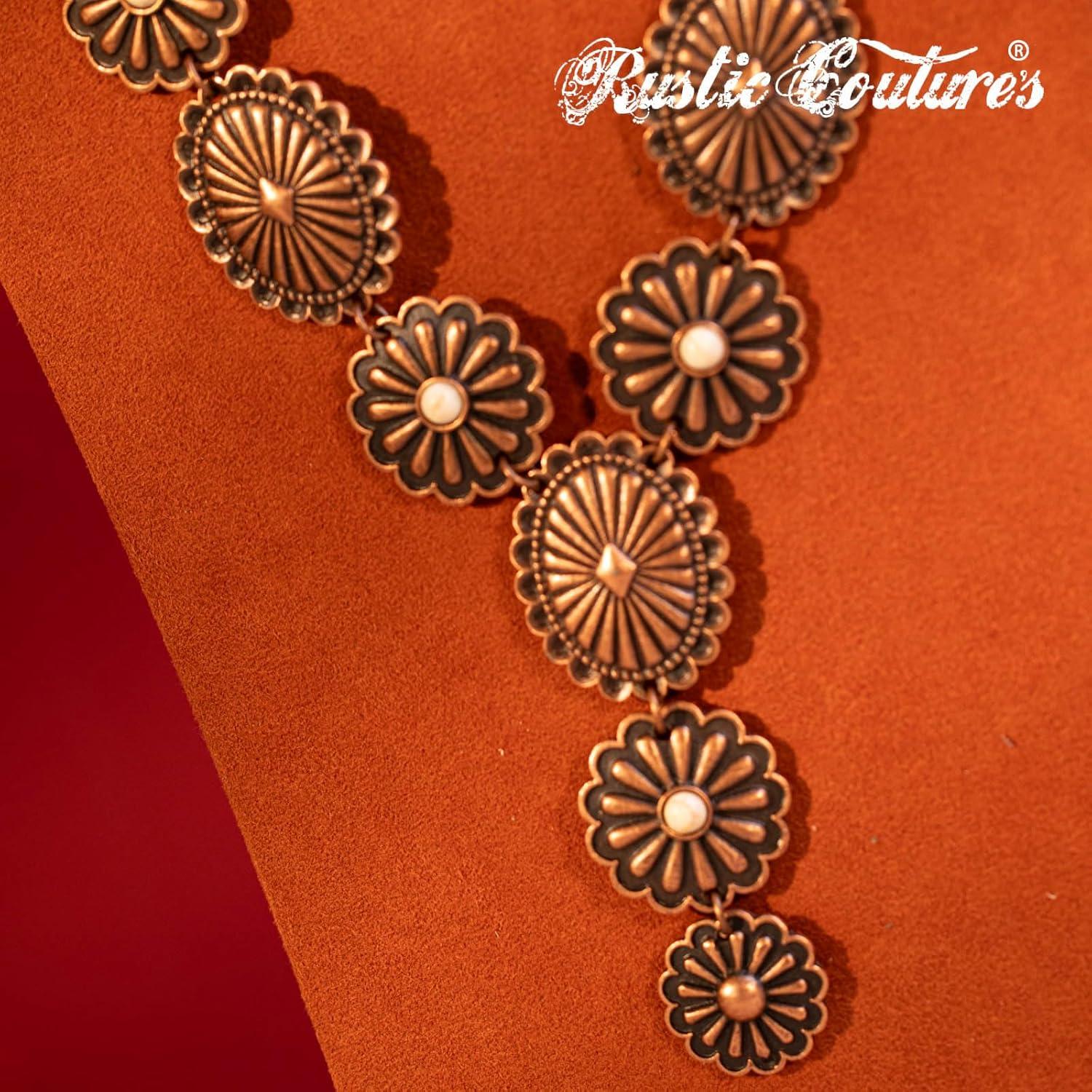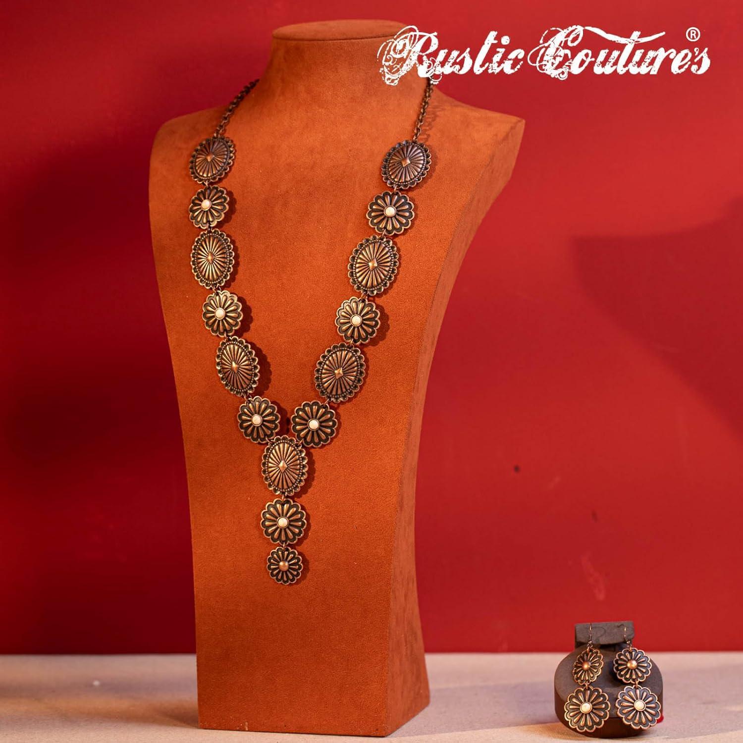Rustic Couture’s Western Necklace Earrings Jewelry Set for Women(A-Turquoise)