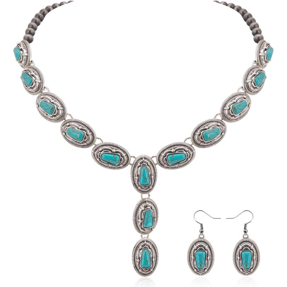 Rustic Couture’s Western Necklace Earrings Jewelry Set for Women(B-Blue)