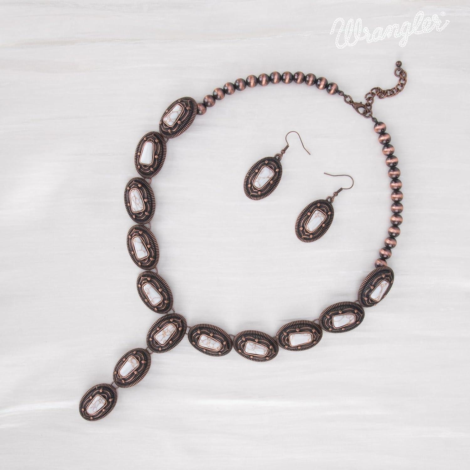 Rustic Couture’s Western Necklace Earrings Jewelry Set for Women(B-White)