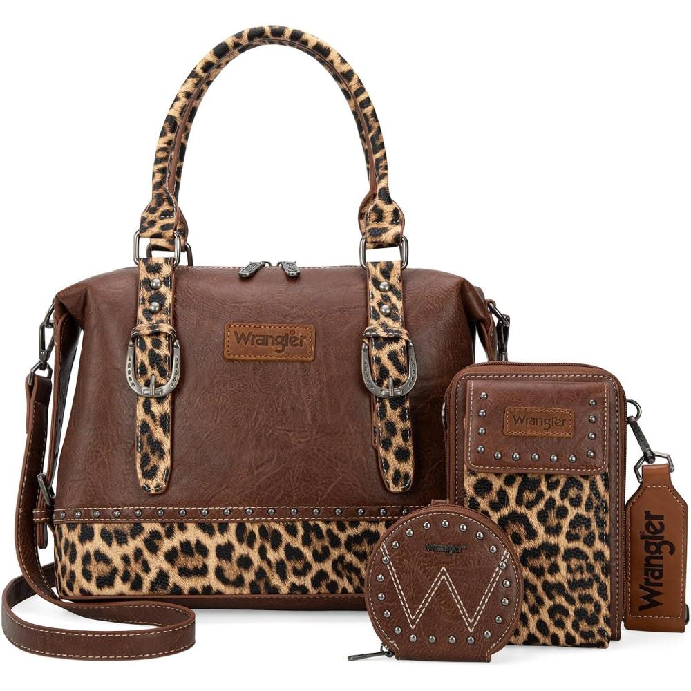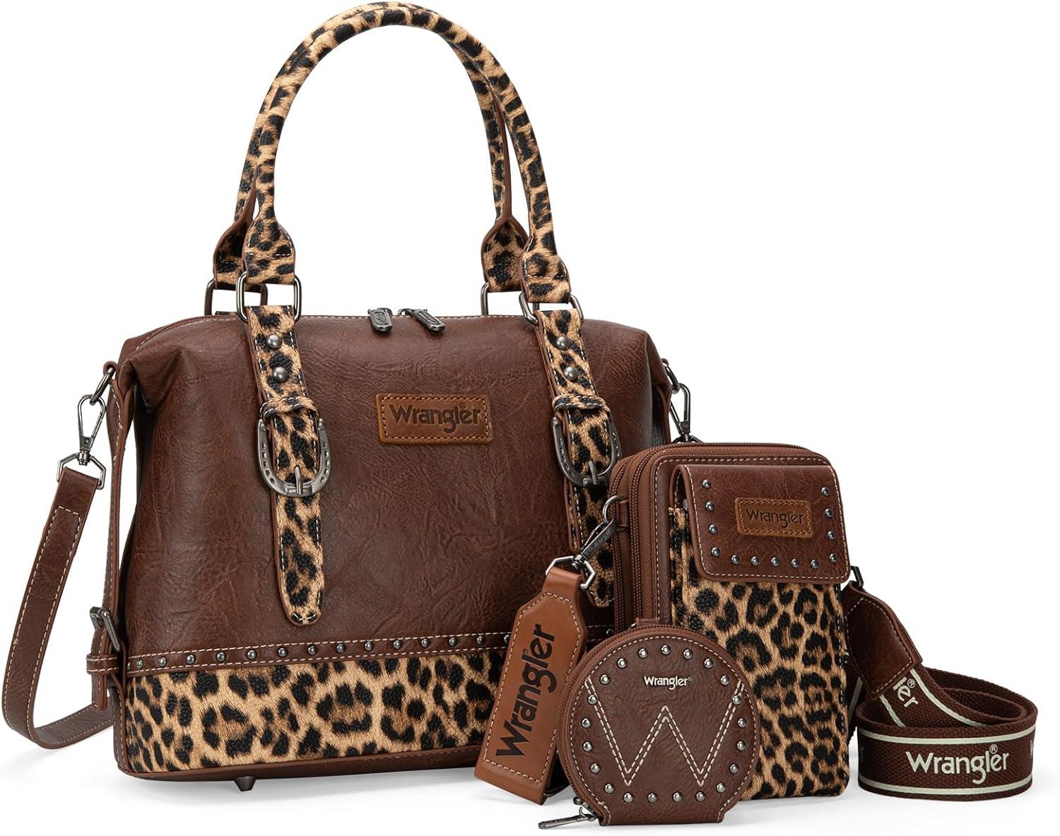 Wrangler 3Pcs Doctor Bag Sets for Women Top-handle Satchel Bag with Cell Phone Handbag and Coin Purse(Brown Leopard)