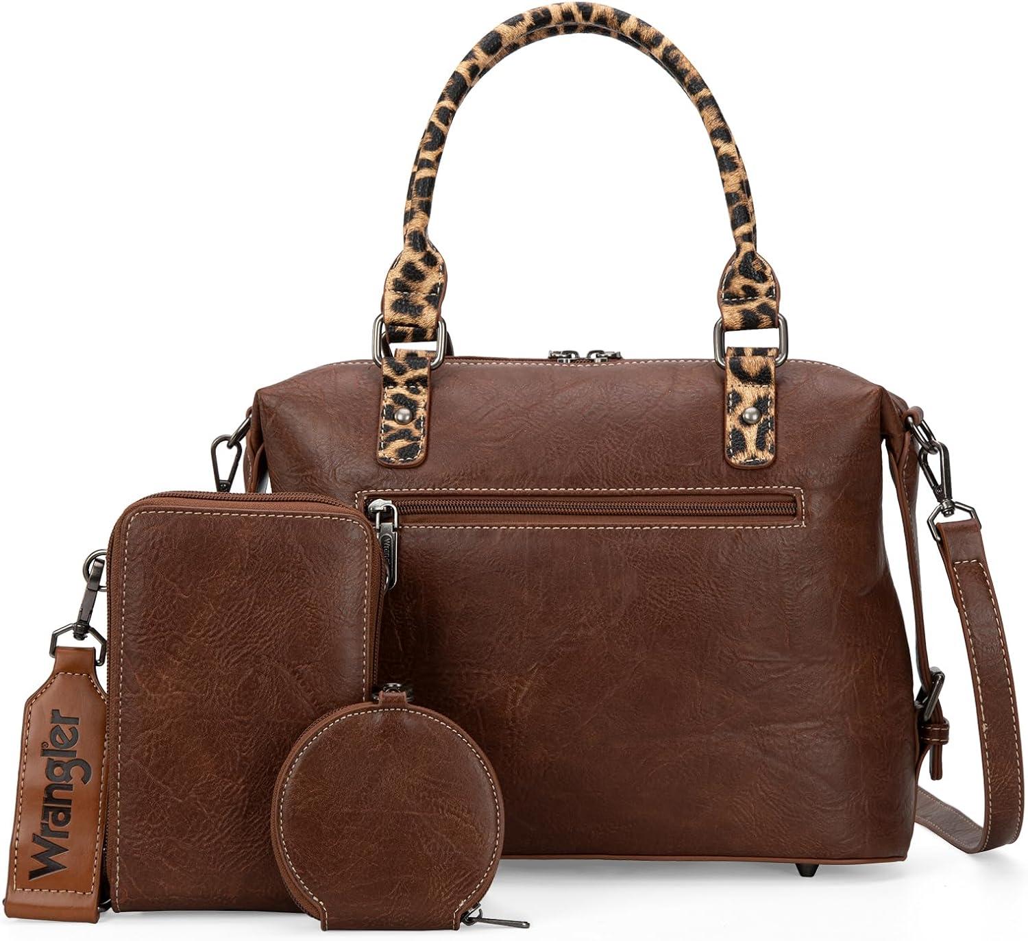 Wrangler 3Pcs Doctor Bag Sets for Women Top-handle Satchel Bag with Cell Phone Handbag and Coin Purse(Coffee Leopard)