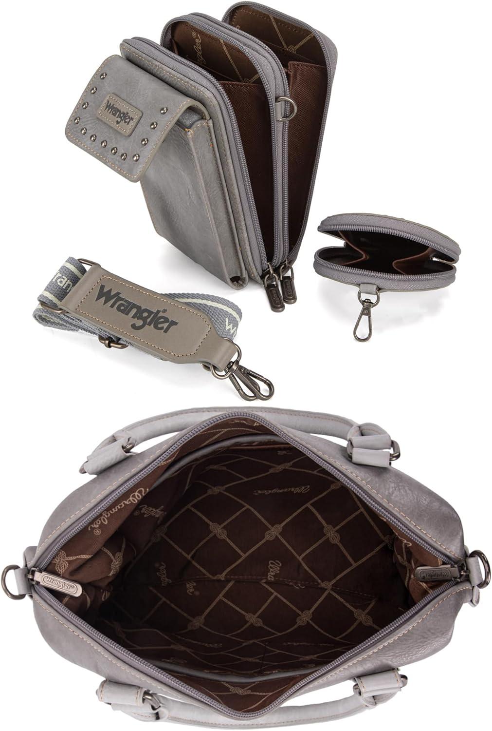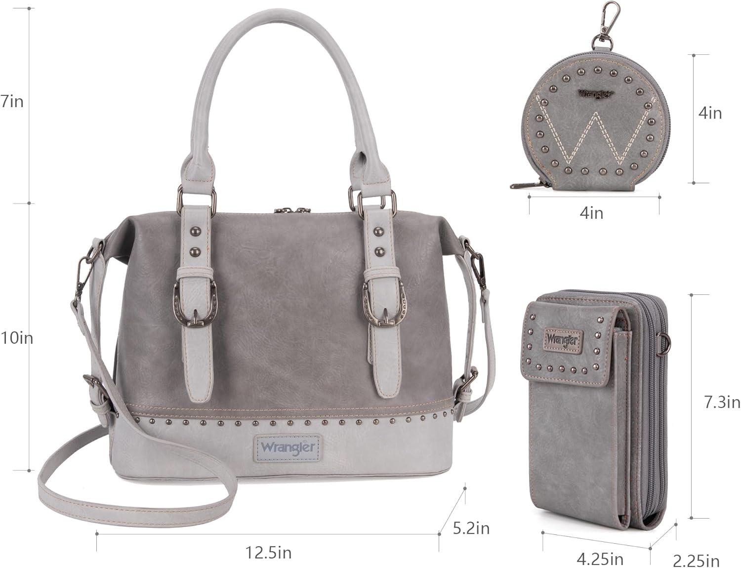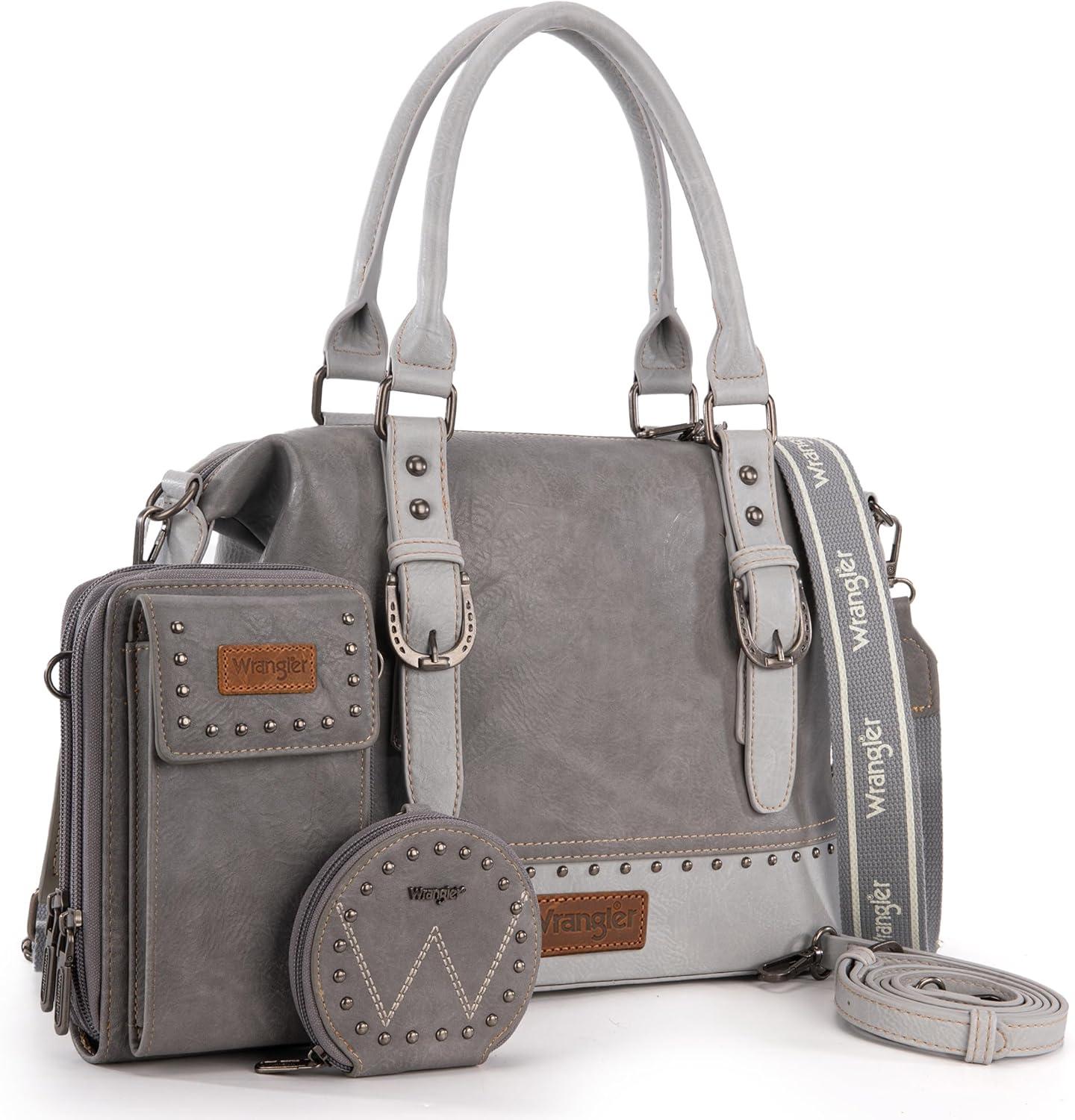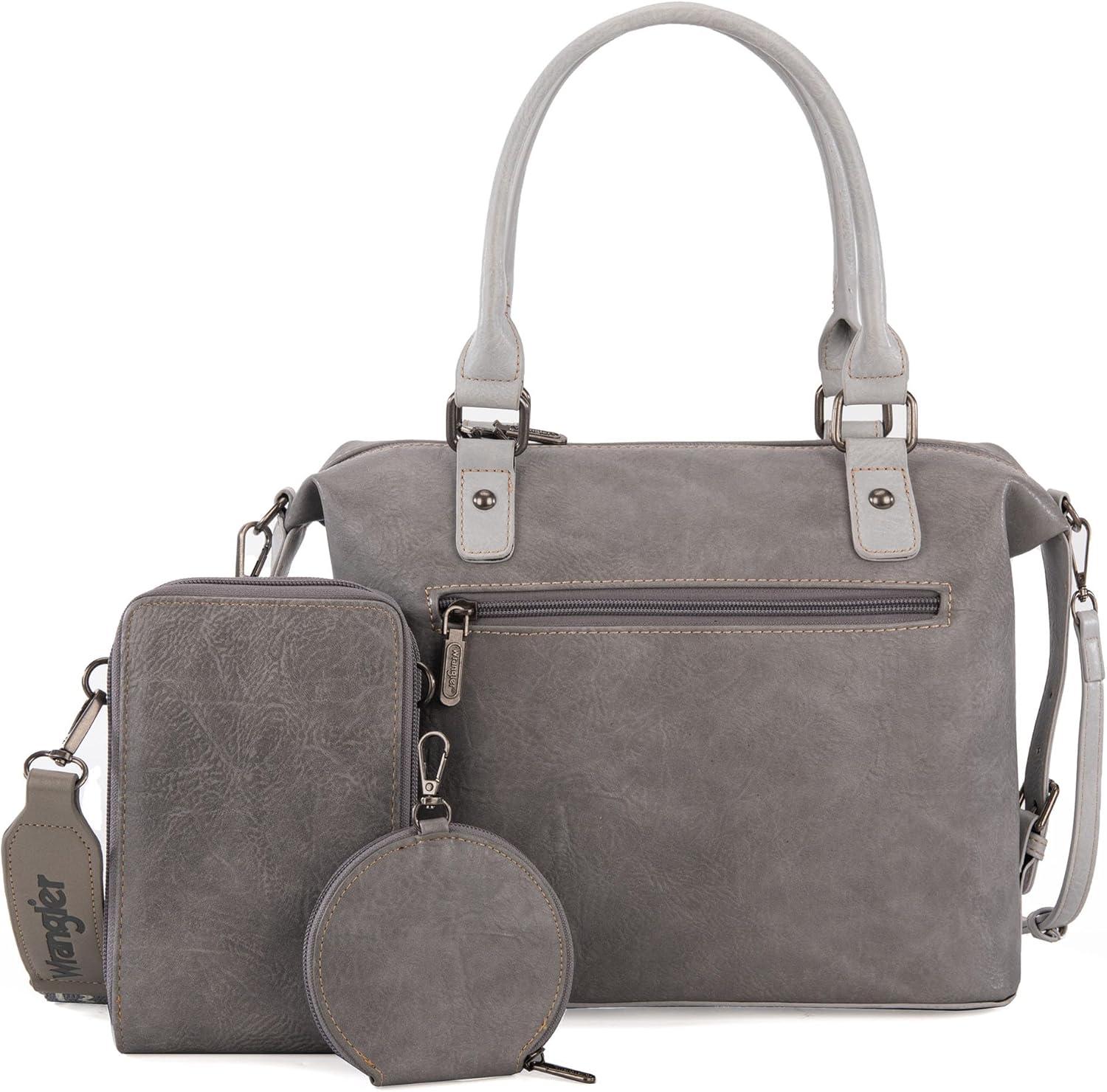 Wrangler 3Pcs Doctor Bag Sets for Women Top-handle Satchel Bag with Cell Phone Handbag and Coin Purse(Eye-catching Gray)