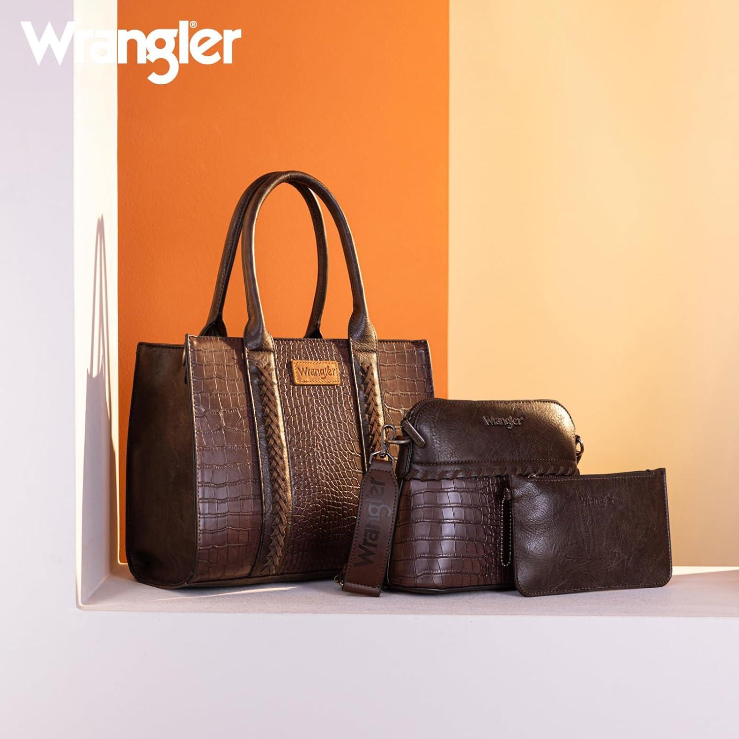 Wrangler 3Pcs Purses for Women Tote Bag Crossbody Handbag Sets with Strap(Crocodile Brown)