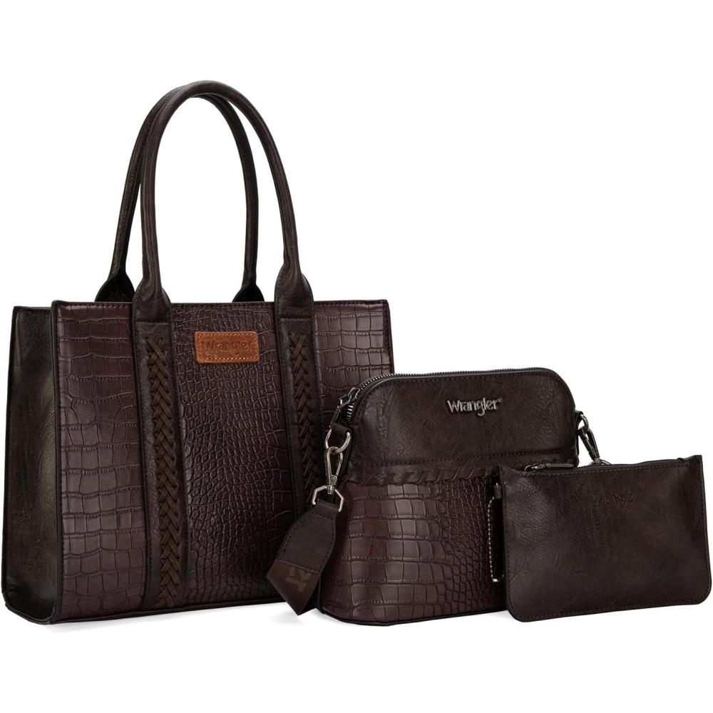 Wrangler 3Pcs Purses for Women Tote Bag Crossbody Handbag Sets with Strap(Crocodile Coffee)