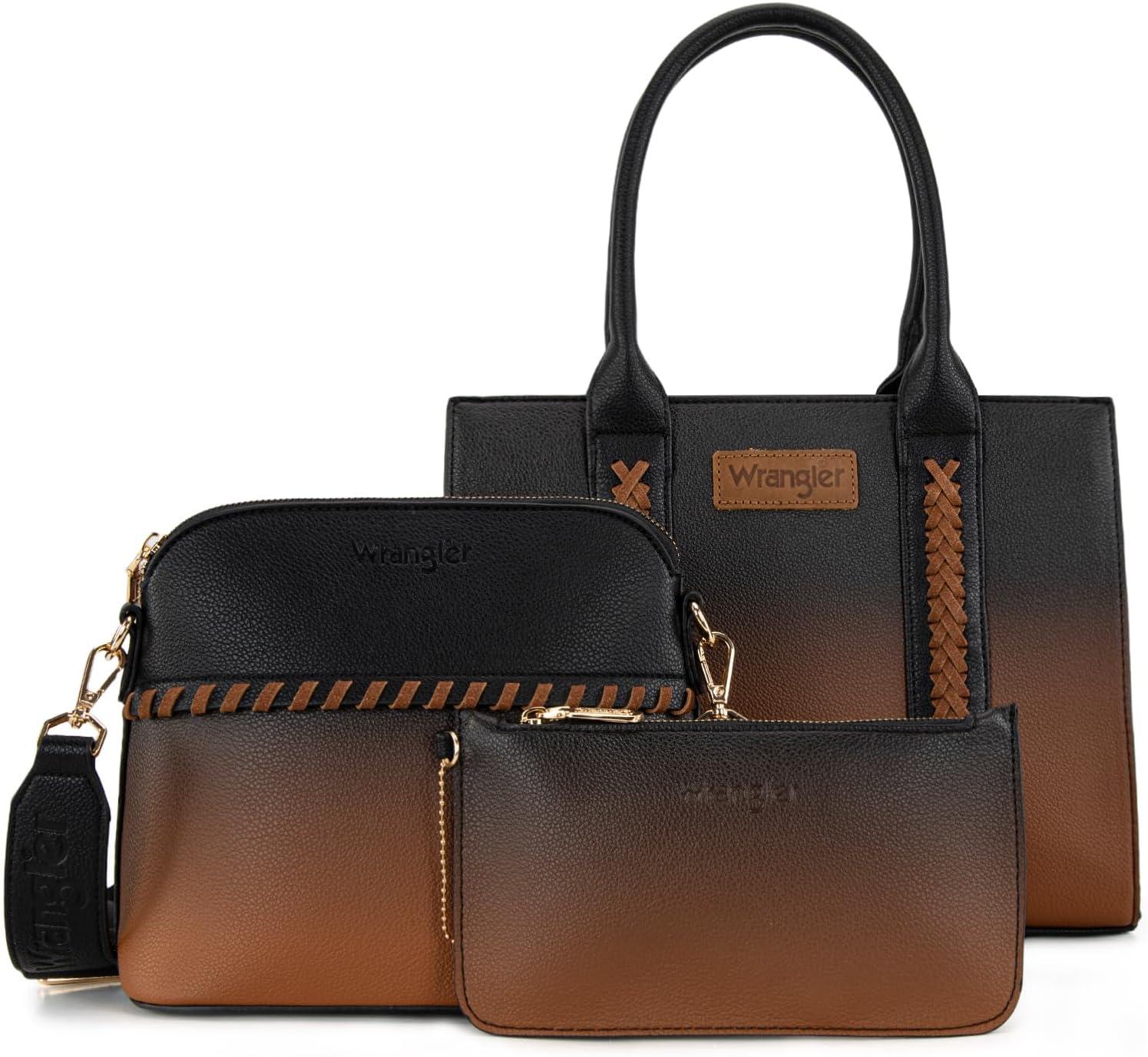 Wrangler 3Pcs Purses for Women Tote Bag Crossbody Handbag Sets with Strap(Gradient Black)