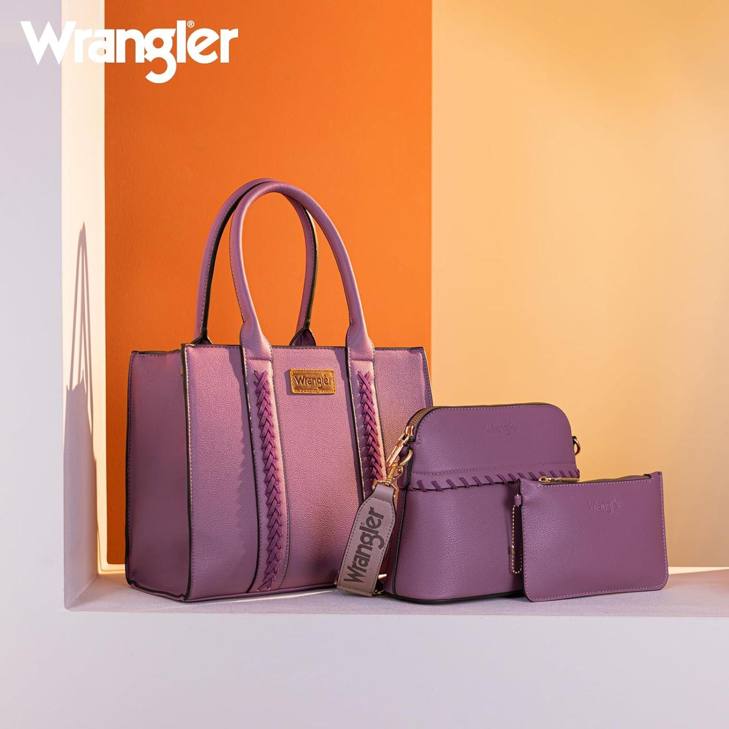 Wrangler 3Pcs Purses for Women Tote Bag Crossbody Handbag Sets with Strap(Purple)