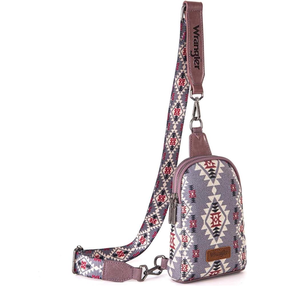 Wrangler Aztec Crossbody Sling Bags for Women Southwestern Print Purse with Detachable Strap(Aztec-light Violet)