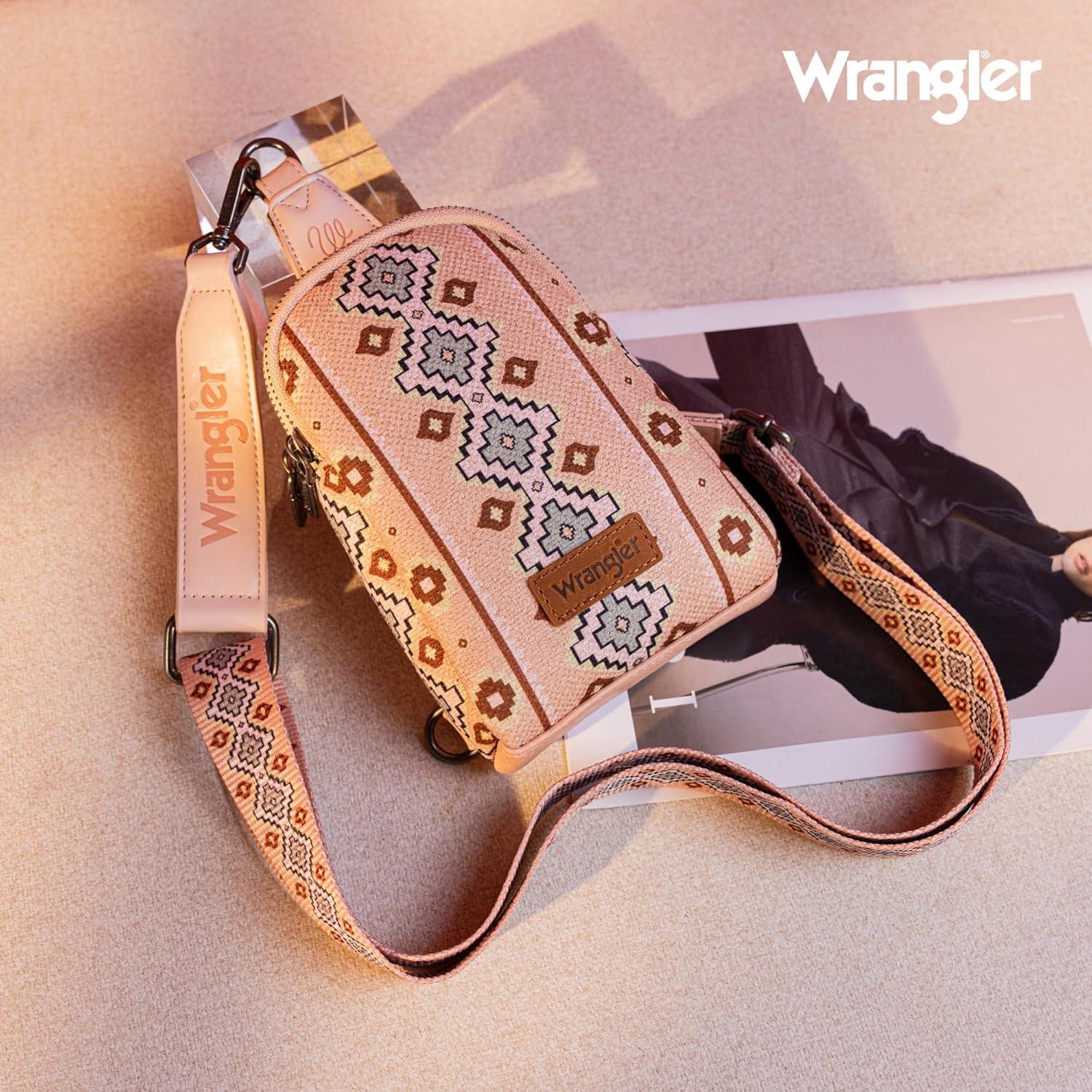 Wrangler Aztec Crossbody Sling Bags for Women Southwestern Print Purse with Detachable Strap(Aztec-pink)