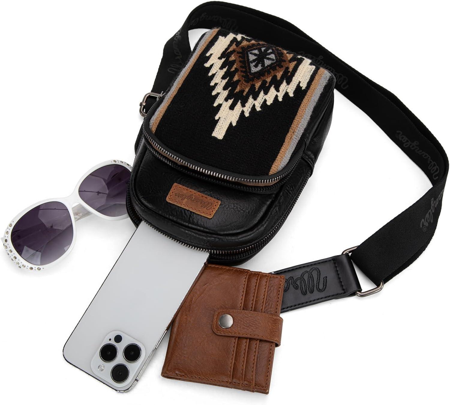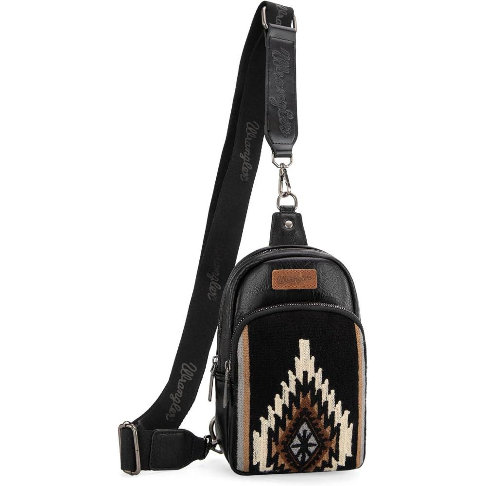 Wrangler Aztec Sling Bag for Women Western Knitted Crossbody Purse and Chest Bag With Adjustable Strap(Aztec -Black)