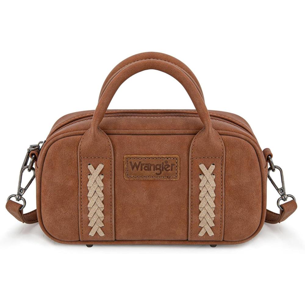 Wrangler Barrel Bag Retro Small Top Handle Bags with Crossbody Strap Boston Satchel Purse and Handbag Women(Brown)