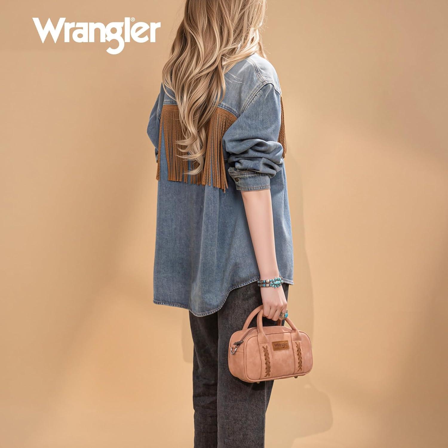 Wrangler Barrel Bag Retro Small Top Handle Bags with Crossbody Strap Boston Satchel Purse and Handbag Women(Dawn Pink)