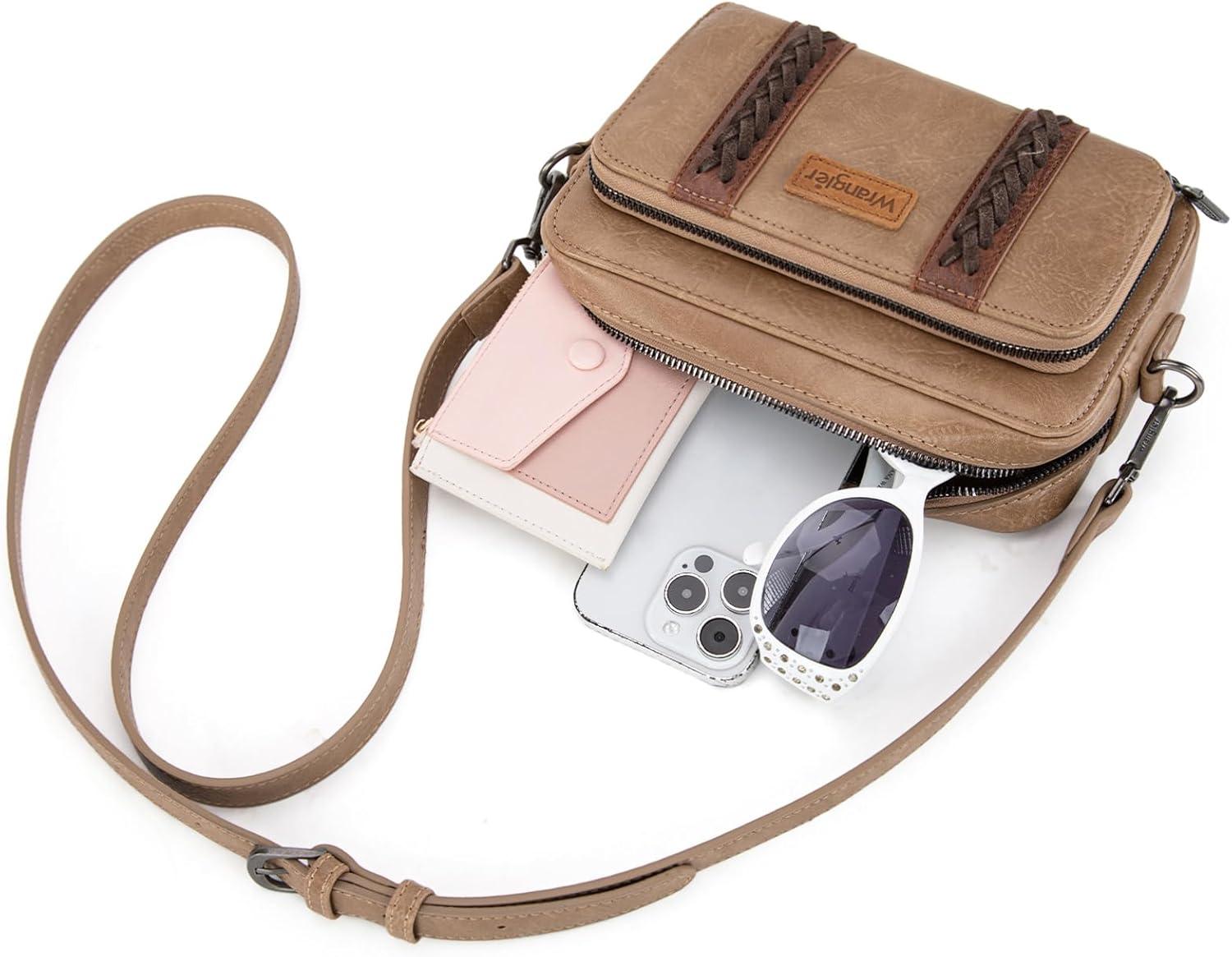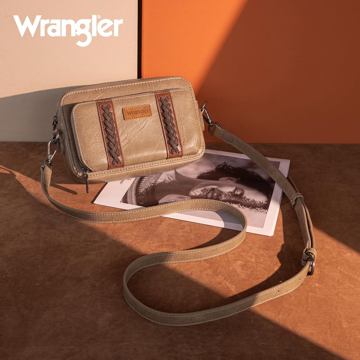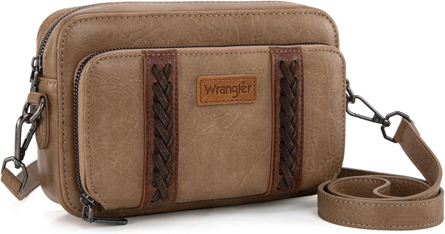 Wrangler Crossbody Bag for Women Shoulder Purse Small Multi Pocket Crossover Bag with Adjustable Strap(A-khaki)
