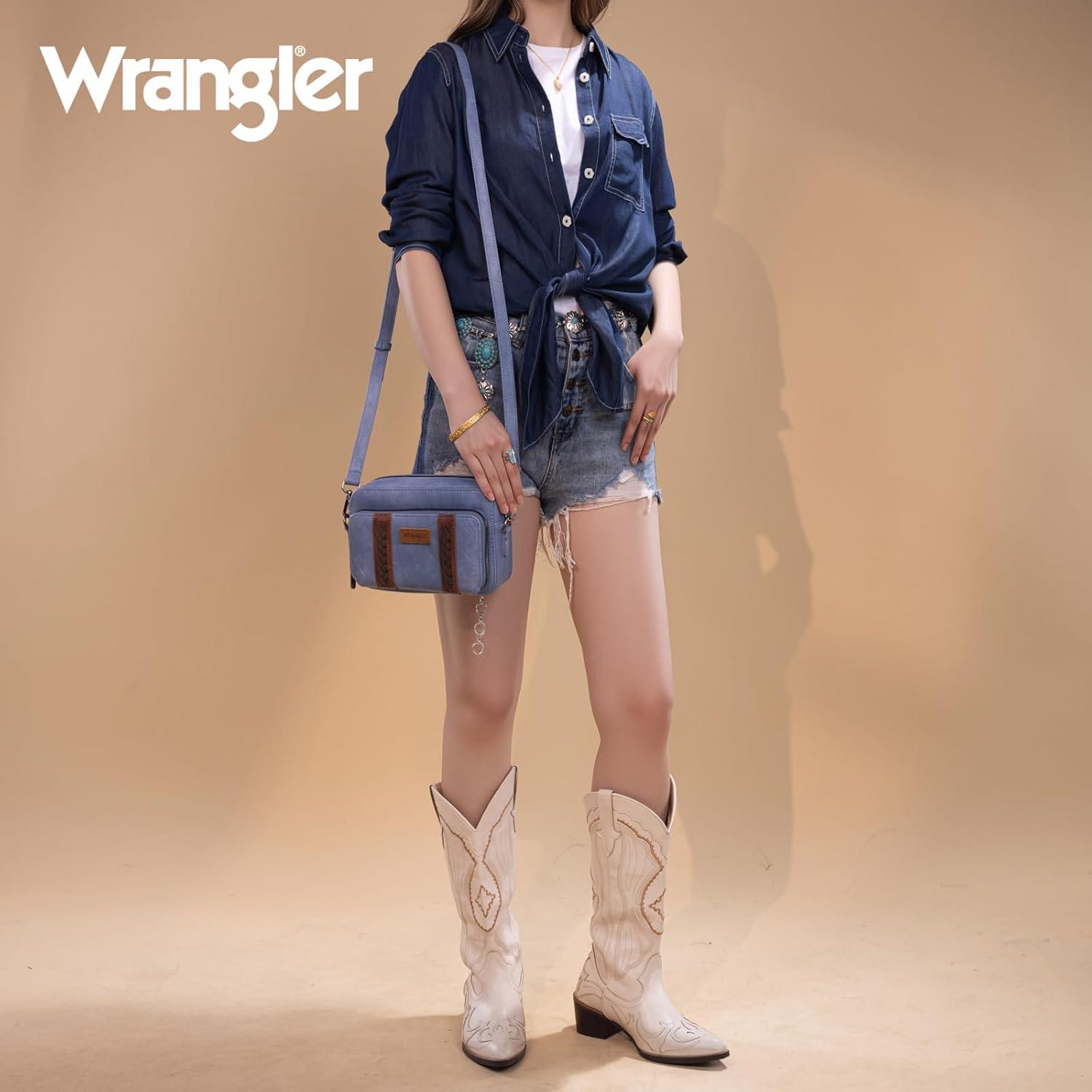 Wrangler Crossbody Bag for Women Shoulder Purse Small Multi Pocket Crossover Bag with Adjustable Strap(Jean)