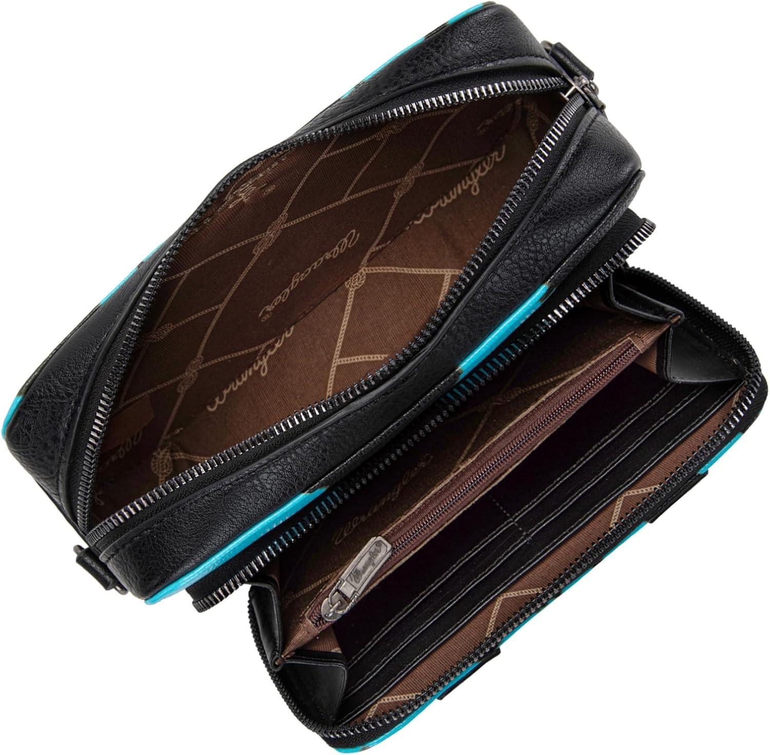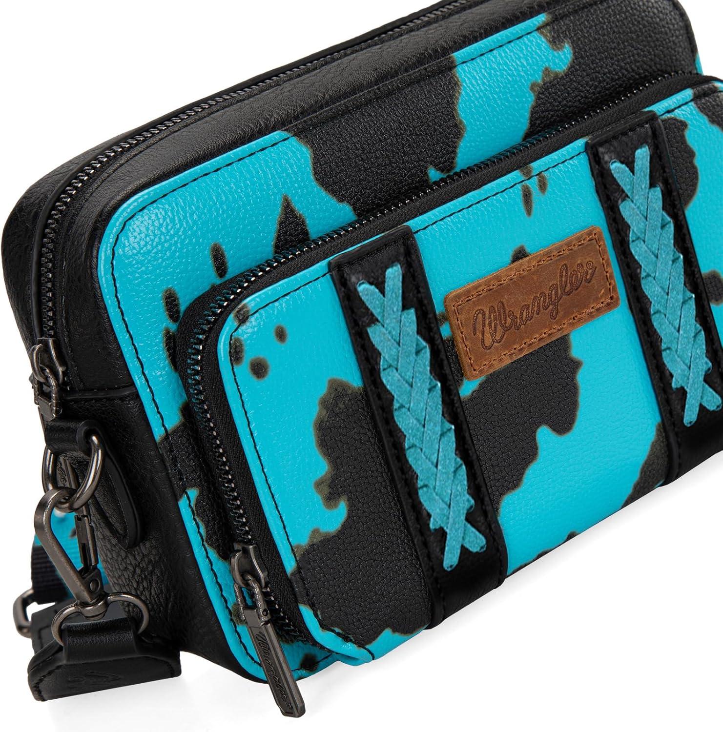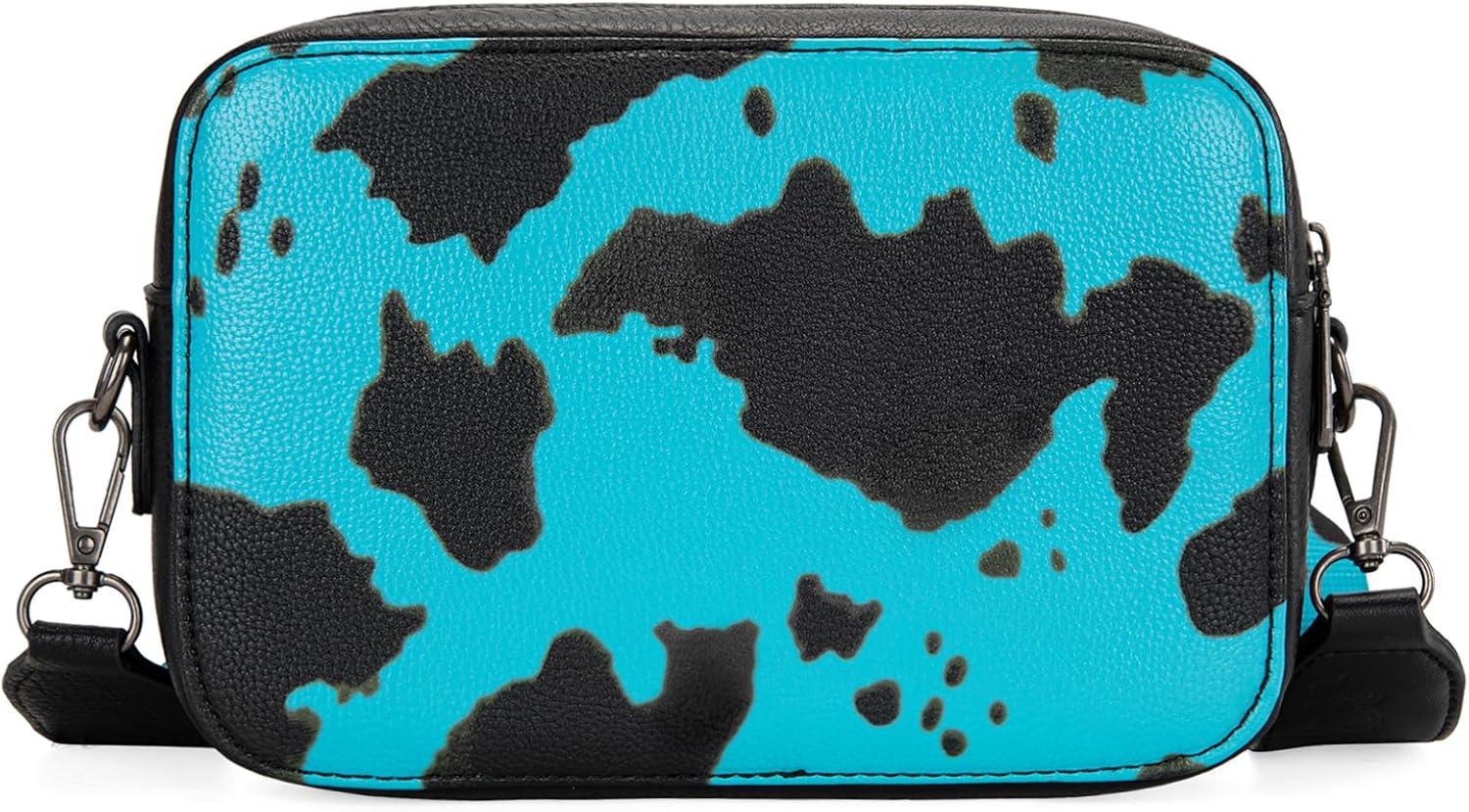 Wrangler Crossbody Bag for Women Western Cowgirl Crossbody Purses with Guitar Strap(Cow Print Turquoise)
