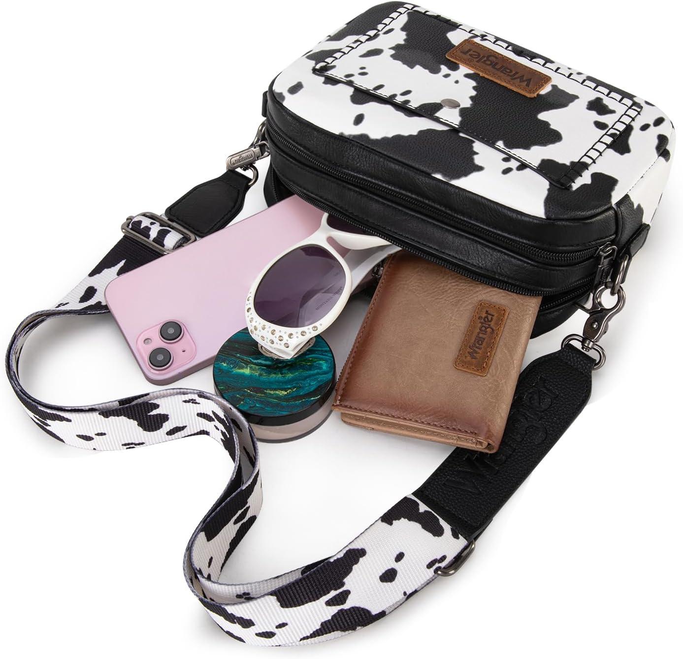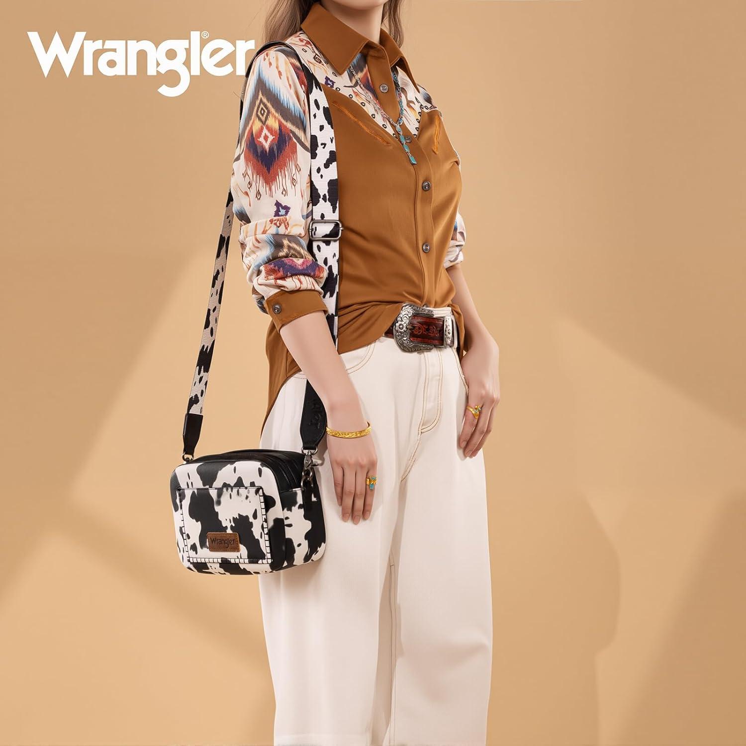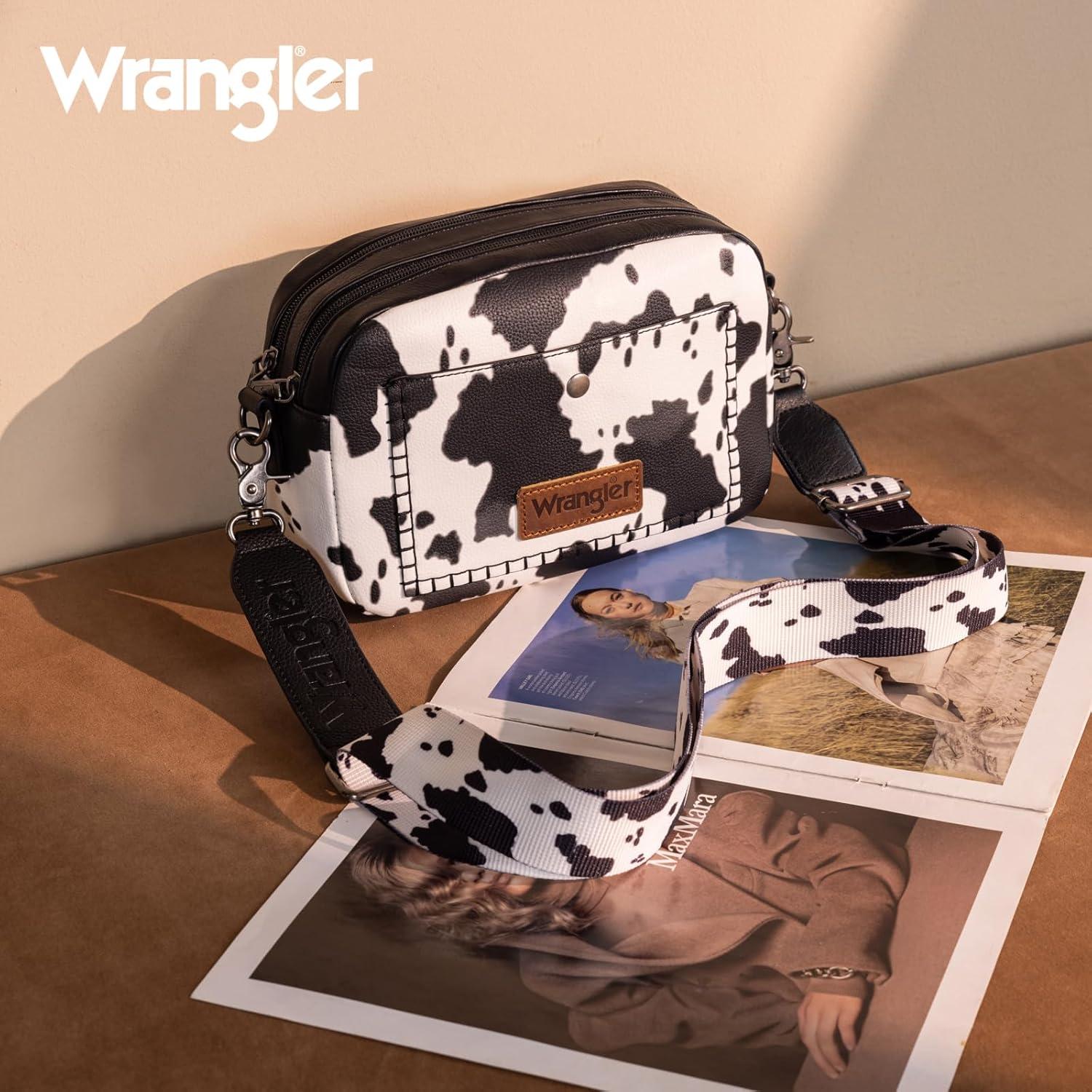 Wrangler Crossbody Purses for Women Trendy Camera Snapshot Bag with Wide Strap(Artist Cow Black)
