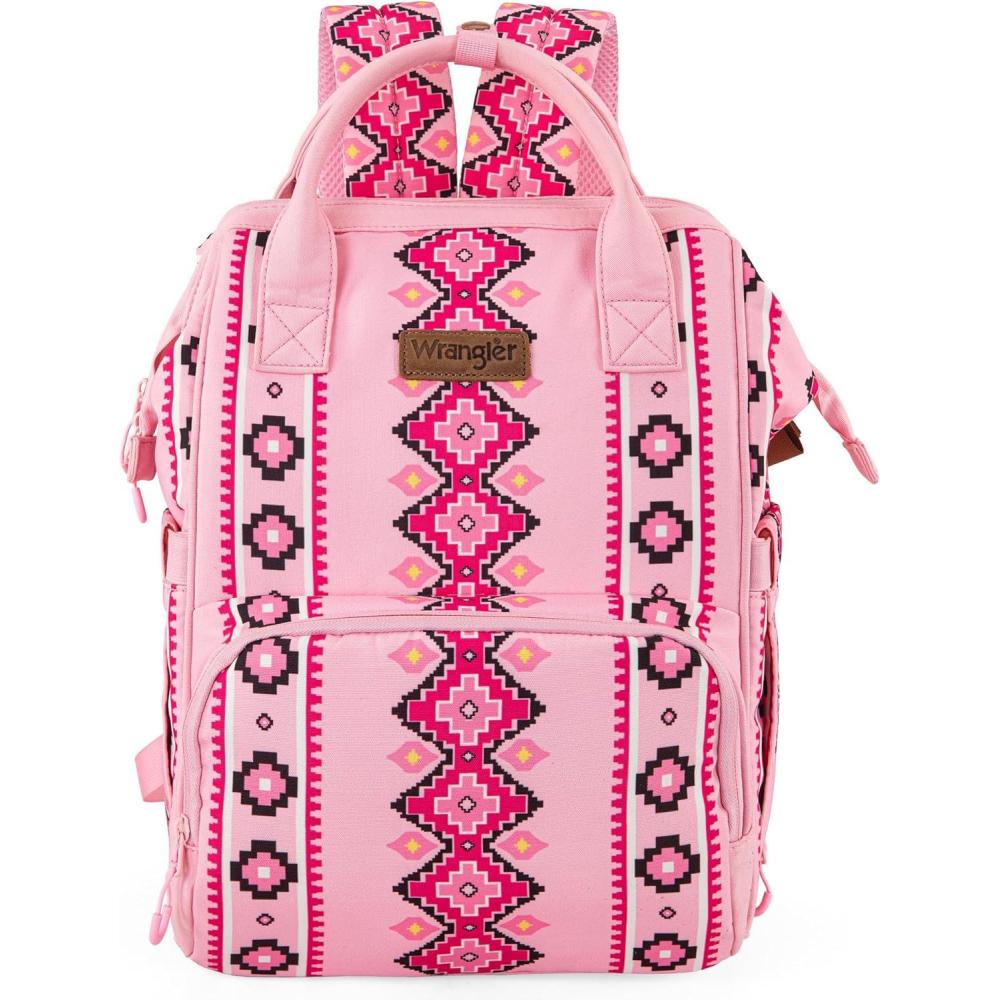 Wrangler Diaper Bag Backpack Aztec Travel Backpack Purses Western Multi-Function Baby Bags for Mom with Waterproof Insulated Pockets(Pink)