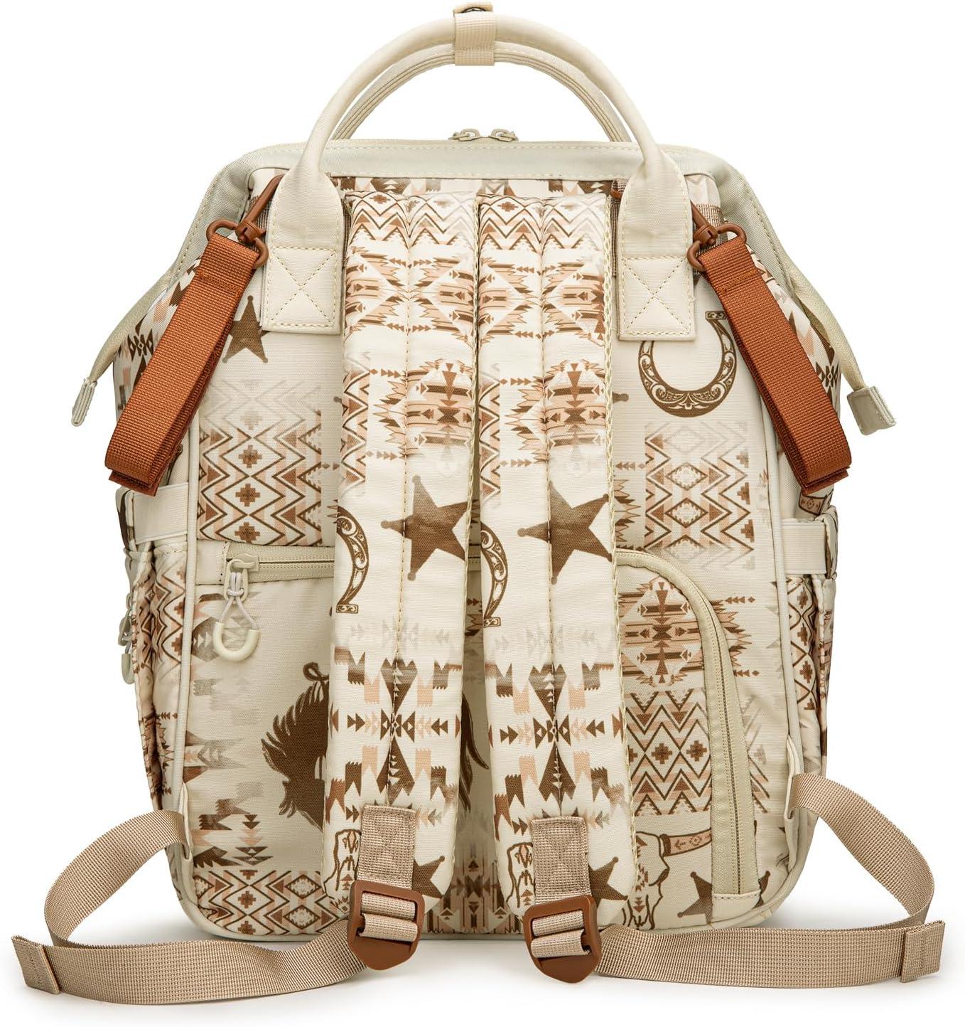 Wrangler Diaper Bag Backpacks Western Backpack Purses Multi-function Baby Bags for Mom with Waterproof Changing Pad & Pacifier Case(3pcs Cow Print Brown)