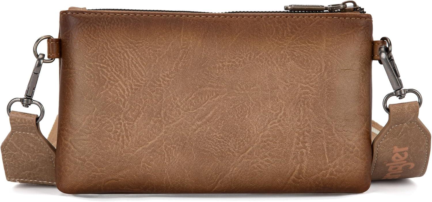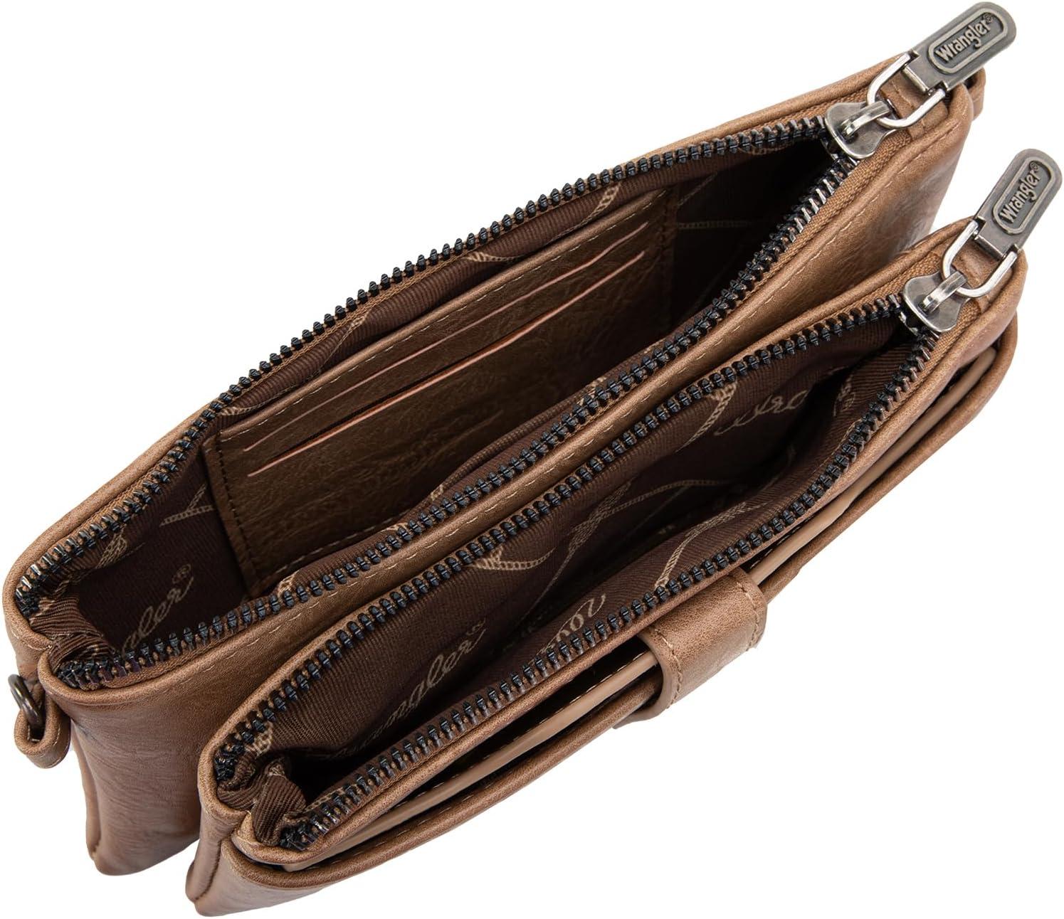 Wrangler Distressed Crossbody Purses for Women Multi-function Card Holder Wallet Small Purse with Double Zipper(Coffee)