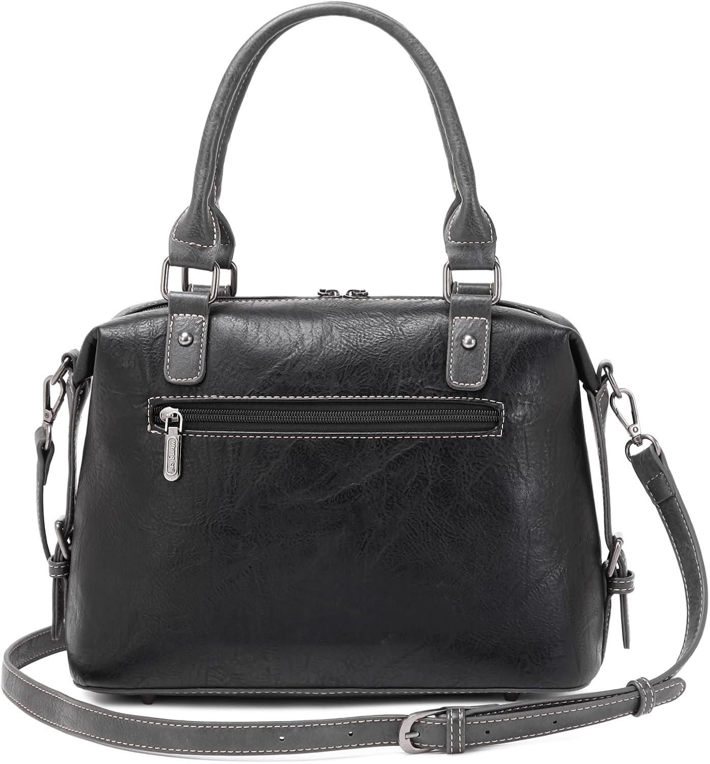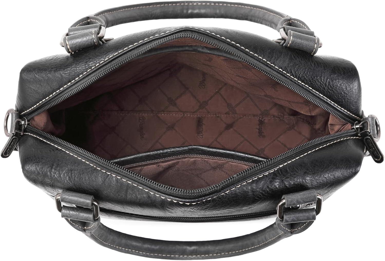 Wrangler Doctor Bag Top Handle Purse Hobo Shoulder Barrel Satchel Handbags for Women(Cow Black)
