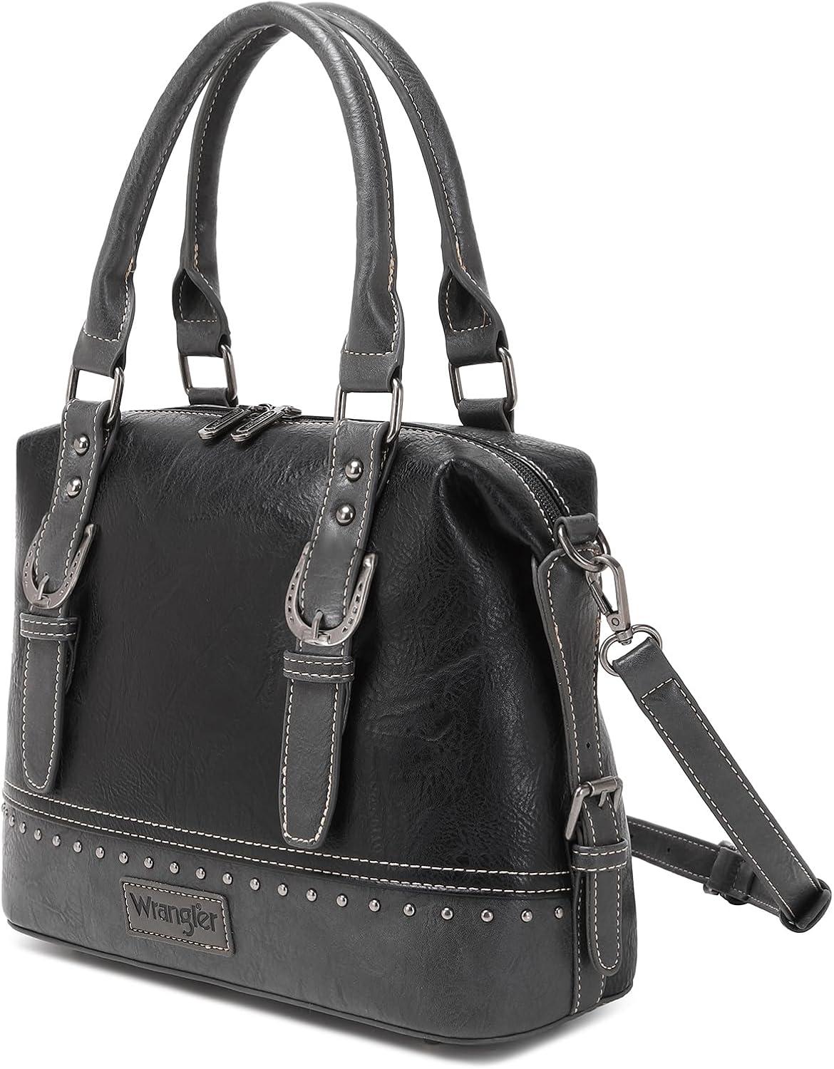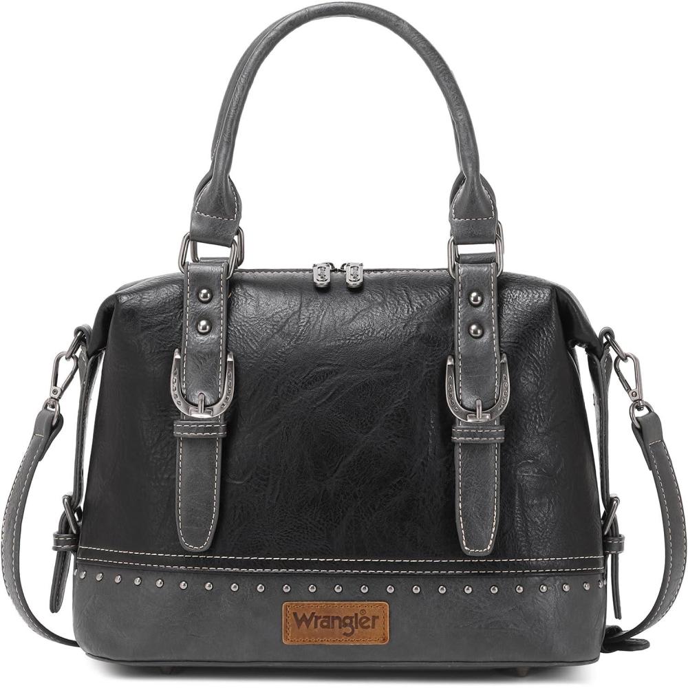 Wrangler Doctor Bag Top Handle Purse Hobo Shoulder Barrel Satchel Handbags for Women(Cannon Black)