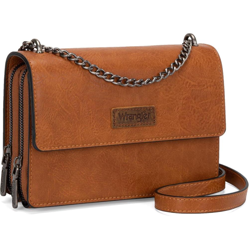 Wrangler Flap Crossbody Purse for Women Shoulder Bag Vintage Wallets with Chain Strap(Amber Brown)