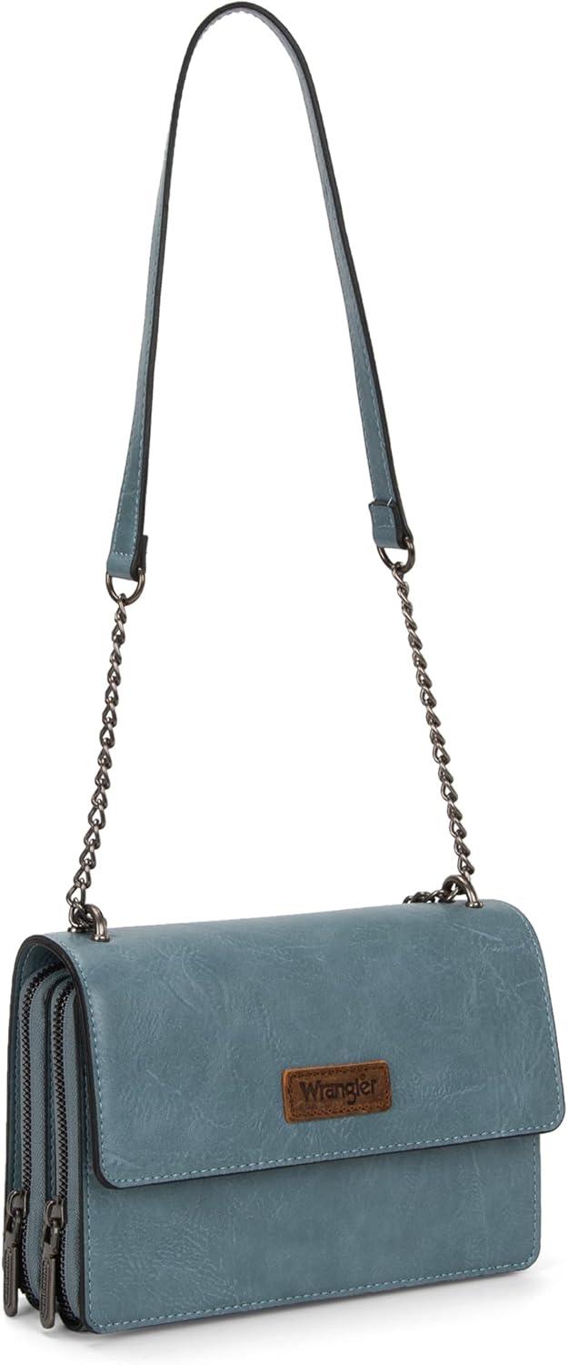 Wrangler Flap Crossbody Purse for Women Shoulder Bag Vintage Wallets with Chain Strap(Ether Blue)