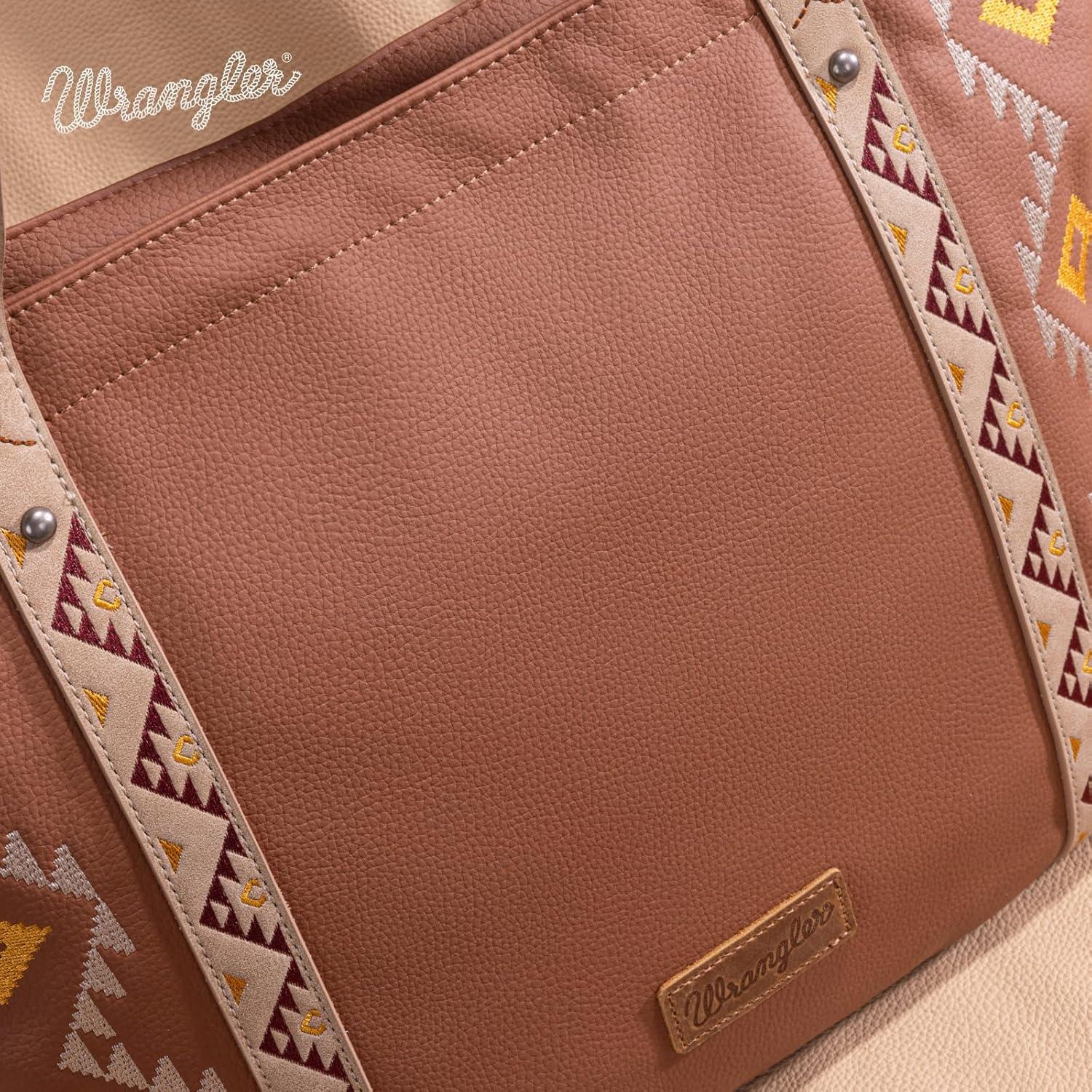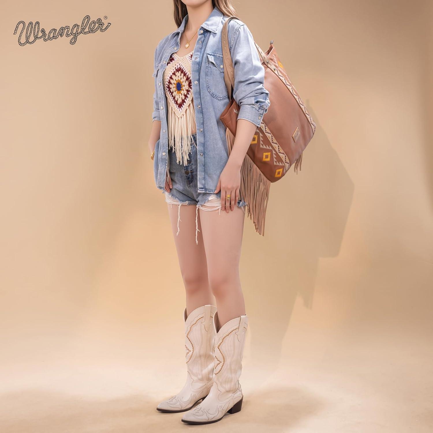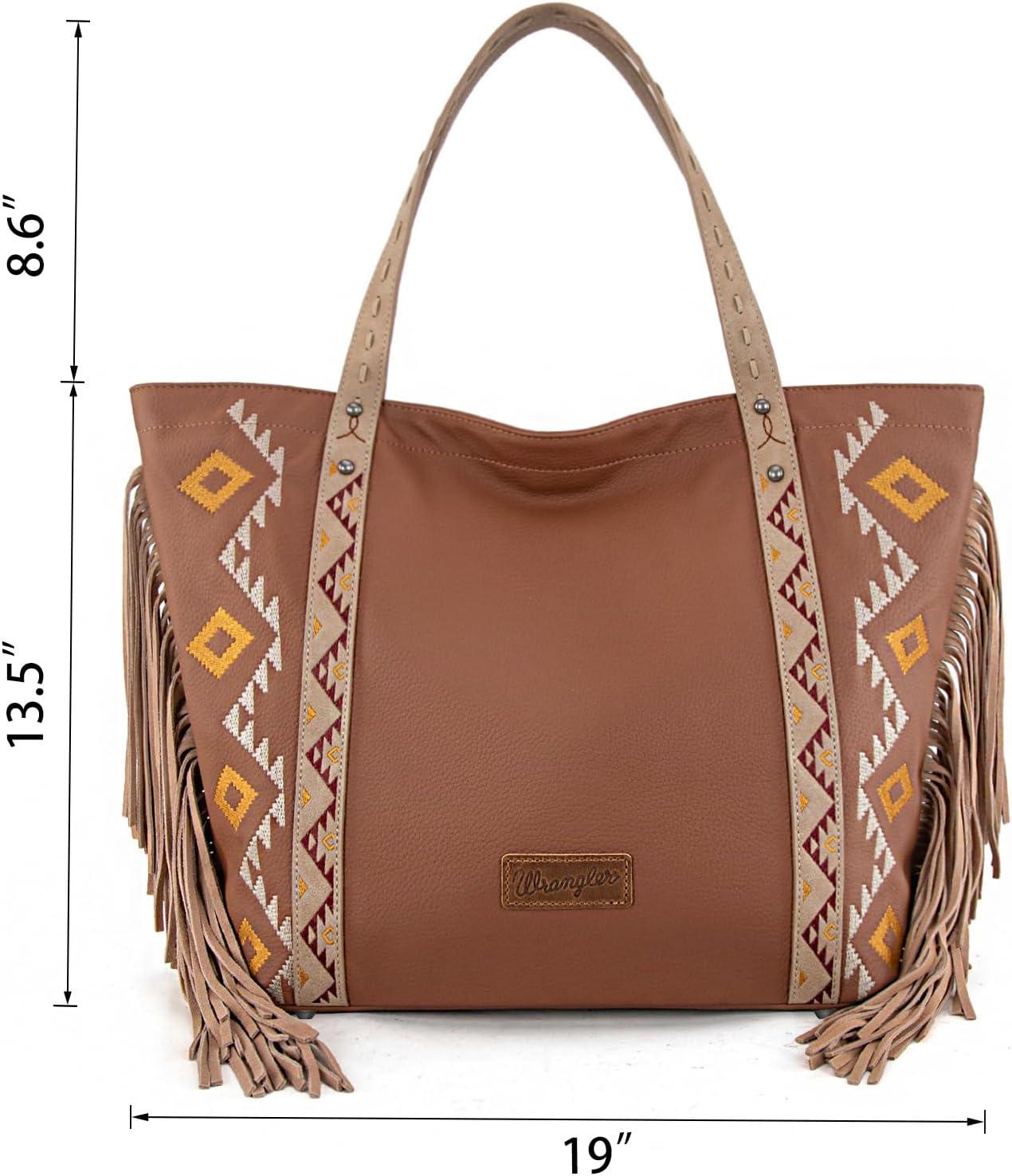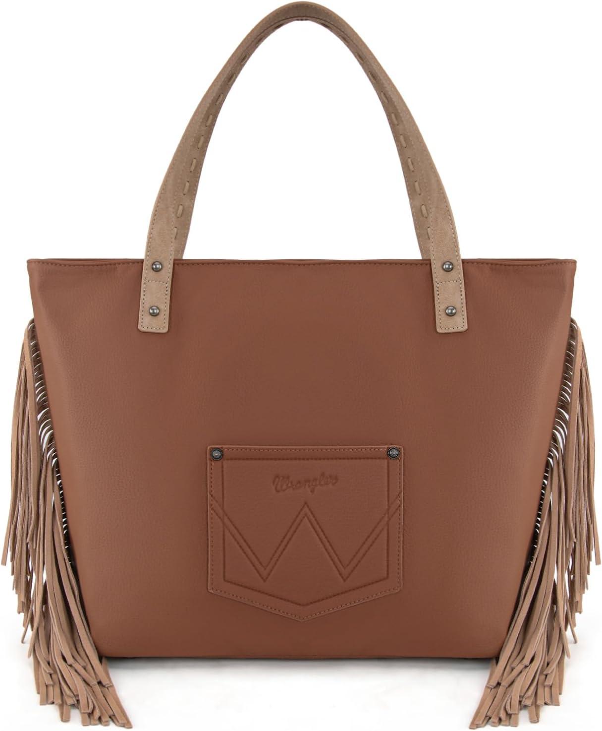 Wrangler Fringe Large Tote Bag for Women Soft Vegan Leather Purses and Handbags(Tan)
