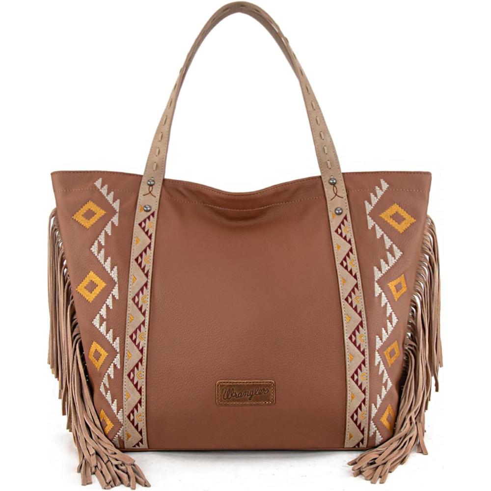 Wrangler Fringe Large Tote Bag for Women Soft Vegan Leather Purses and Handbags(Brown)