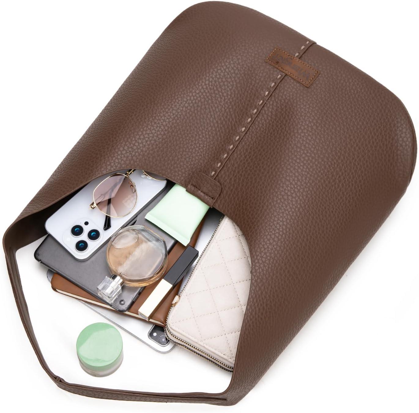 imageWrangler Hobo Bag Purse for Women 2PCS Set Slouchy Shoulder Handbags with Small Crossbody BagCoffee