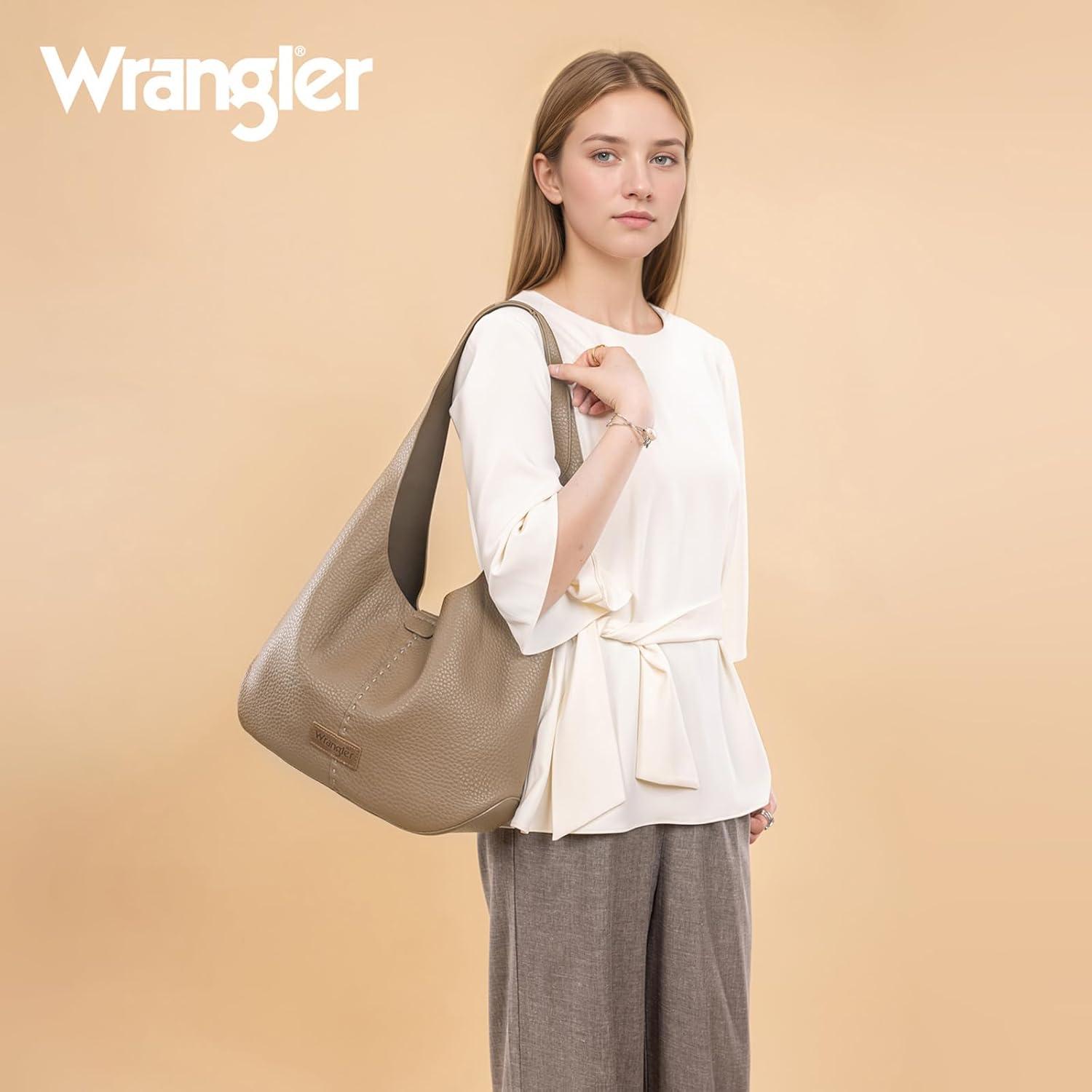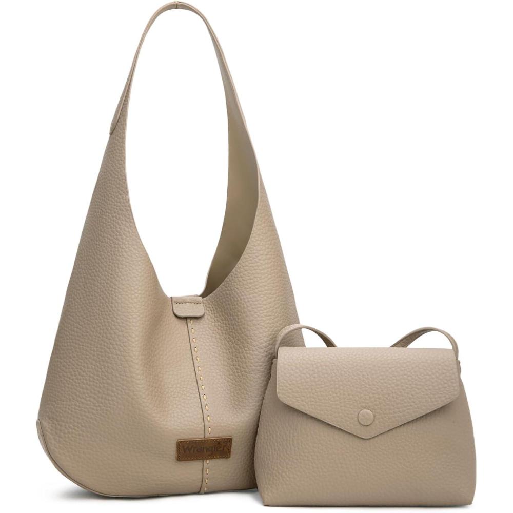 Wrangler Hobo Bag Purse for Women 2PCS Set, Slouchy Shoulder Handbags with Small Crossbody Bag(Khaki)