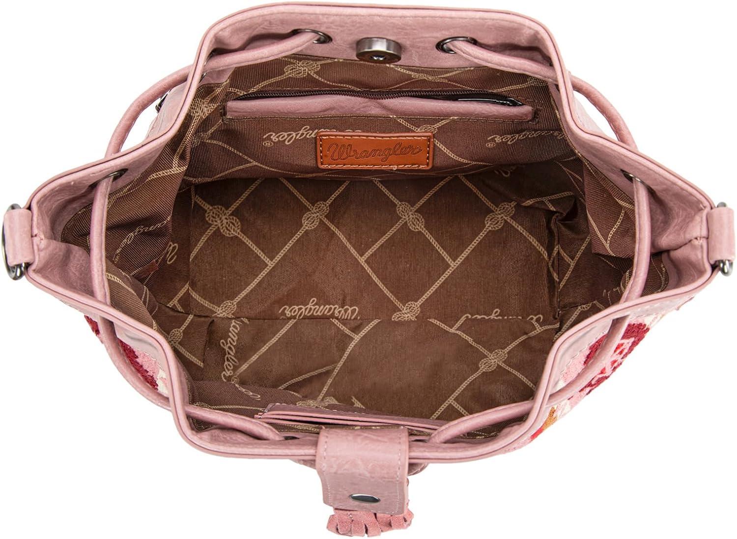 Wrangler Hobo Bags for Women Designer Aztec Bucket Purses Western Tapestry Shoulder Handbags(Tapestry-pink)