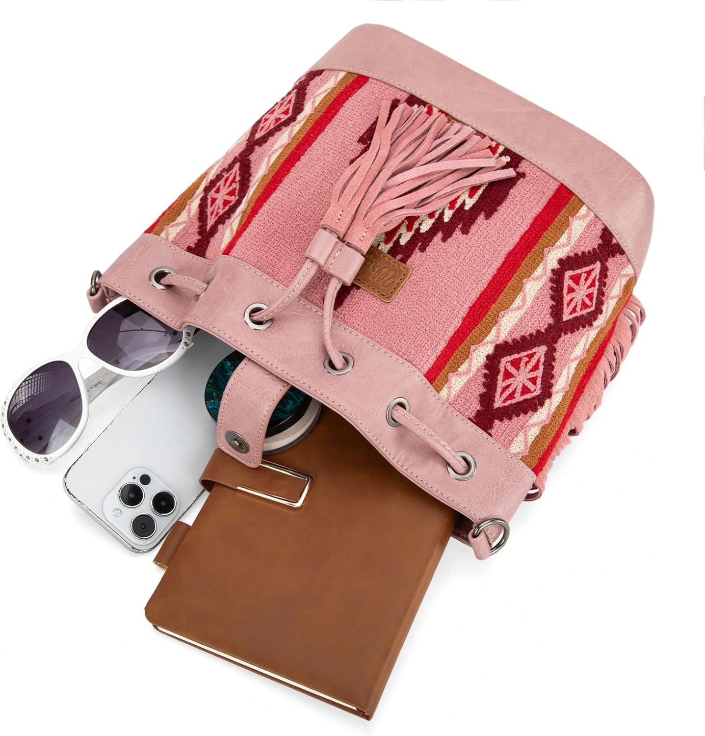 imageWrangler Hobo Bags for Women Designer Aztec Bucket Purses Western Tapestry Shoulder HandbagsTapestrypink